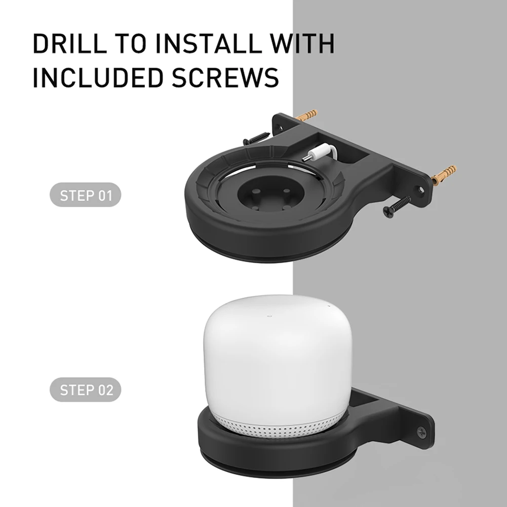 1. Sturdy and durable: Won't fall, including 2 screws, this router stand can hang your mini smart speaker securely without any hassle. Protect your mini smart speaker from dangerous areas.
