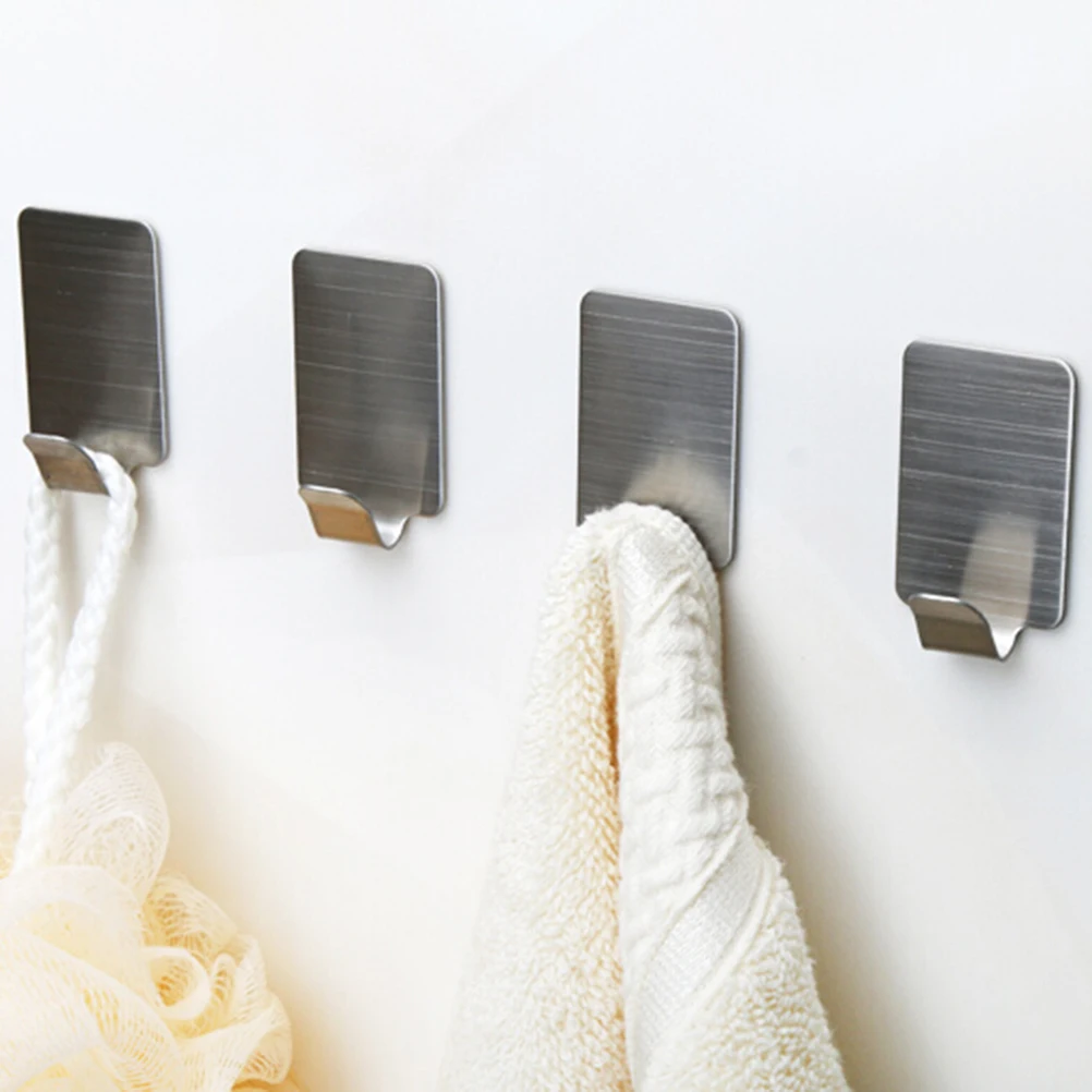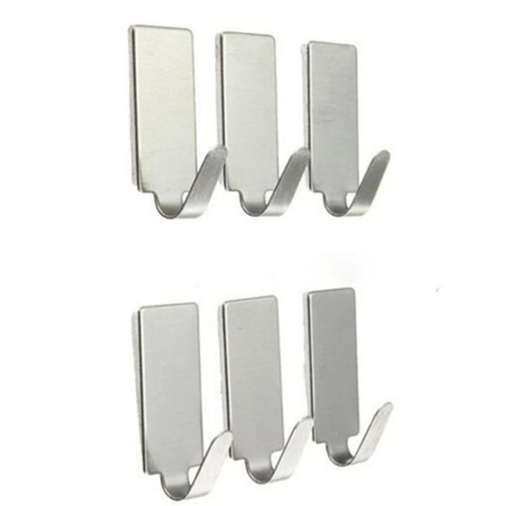 6 piezas por lote, ganchos para colgar batas familiares de acero inoxidable, sombreros, bolsa, llaves para colgador de pared adhesivo para baño, cocina