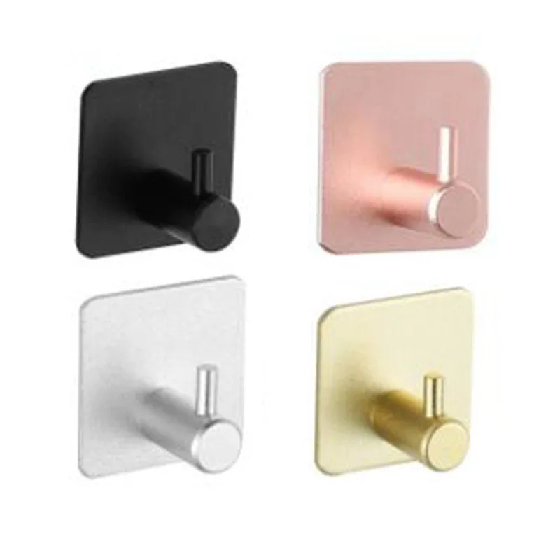 4 colores autoadhesivo hogar cocina colgador de pared toalla puerta gancho llavero cocina toalla colgante aluminio ropa bataero negro