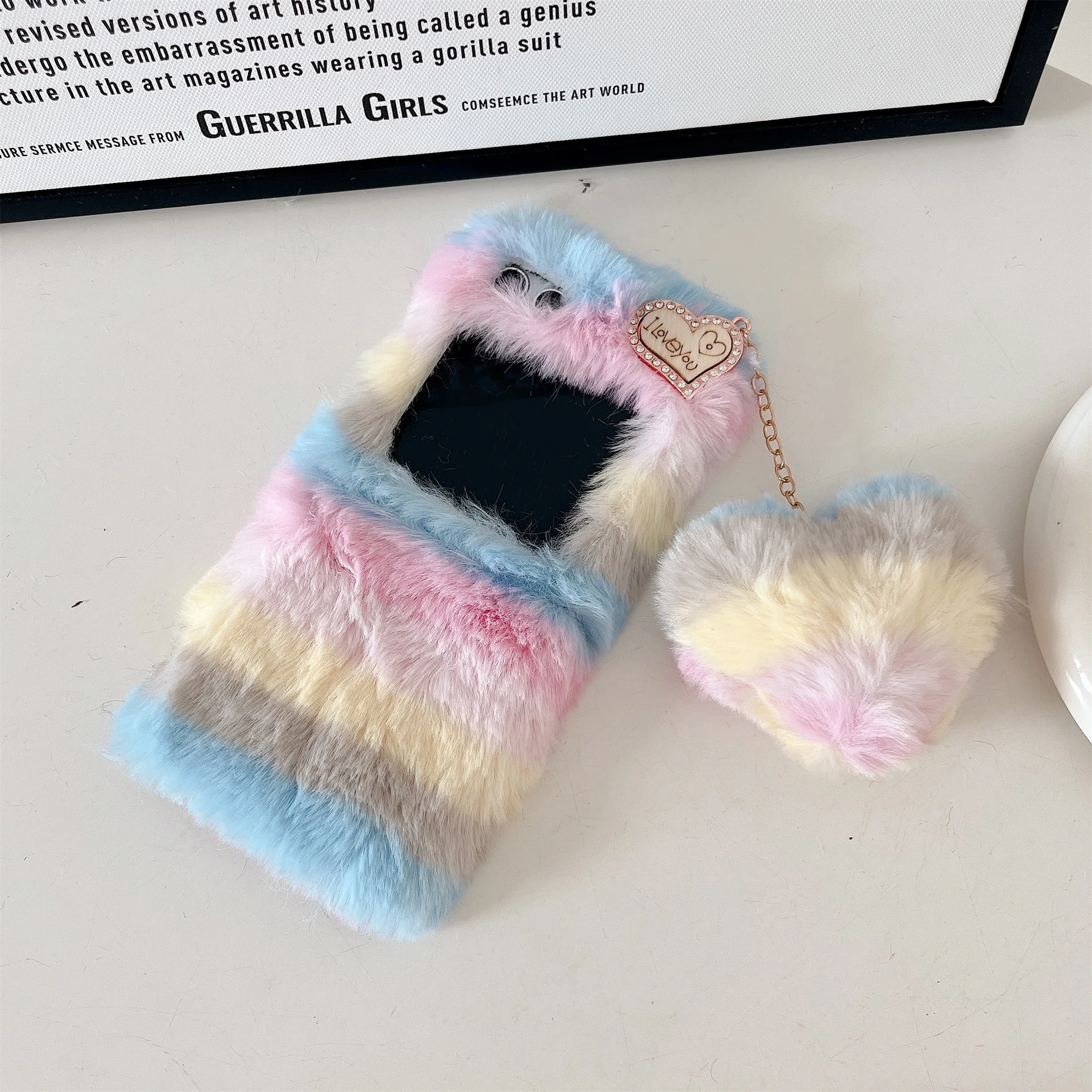 Comprar Colgante de amor a juego de colores de felpa para Samsung Galaxy Z Flip1/2 Z Flip3/4 Z Flip5 Z Fold2 Z Fold3 Z Fold4 Z Fold5, sobre completo