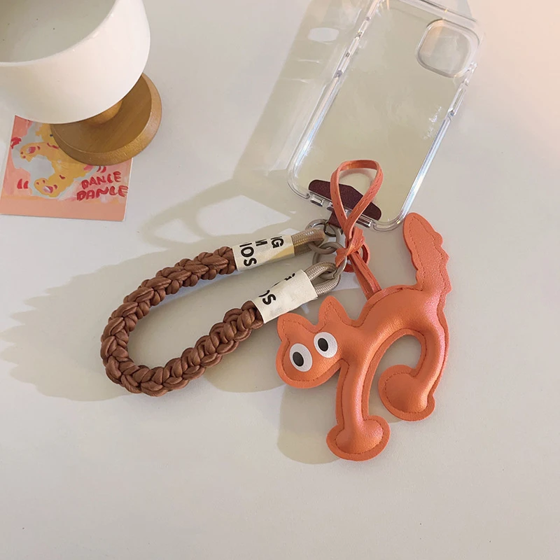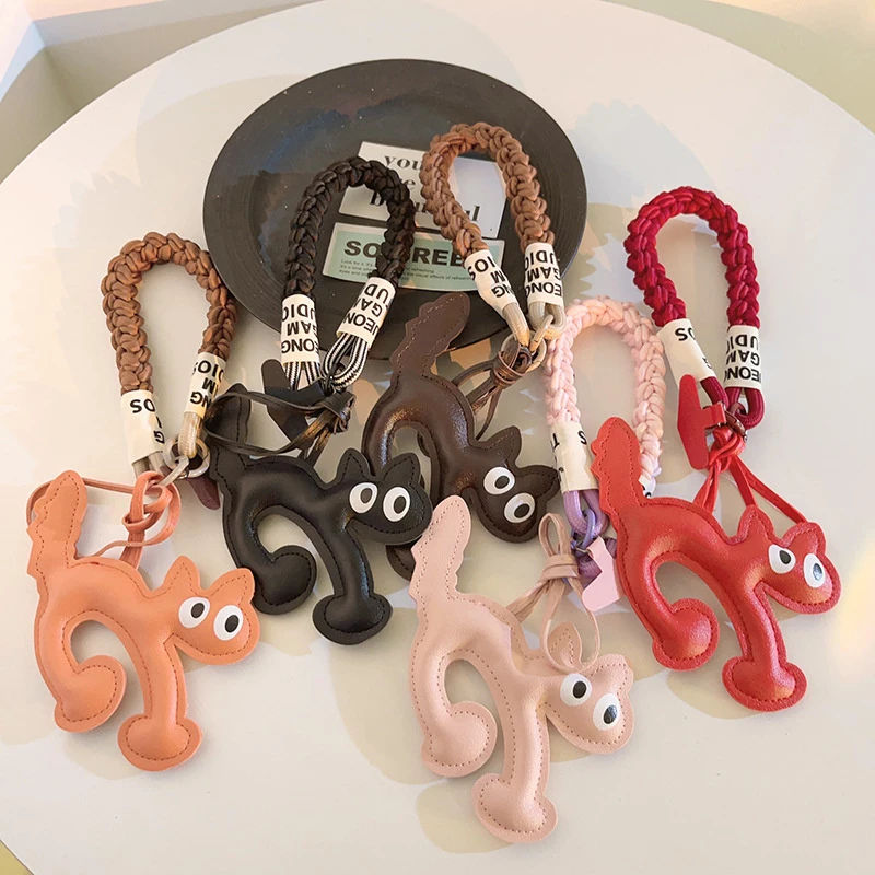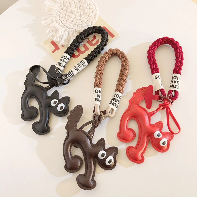 Comprar Colgante de cadena de teléfono con forma de gato de cuero bonito para IPhone, Huawei, Xiaomi, correa de cuerda para teléfono móvil, cordón, bolso, llavero decorativo