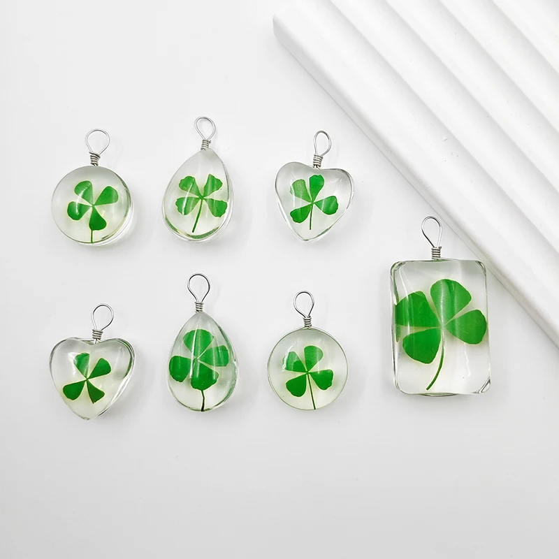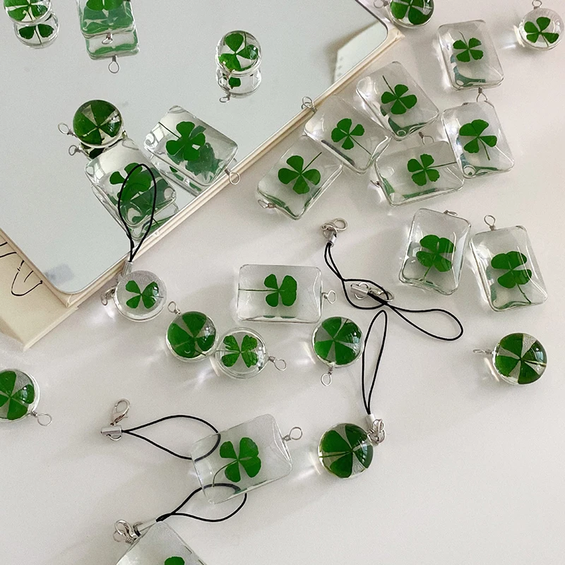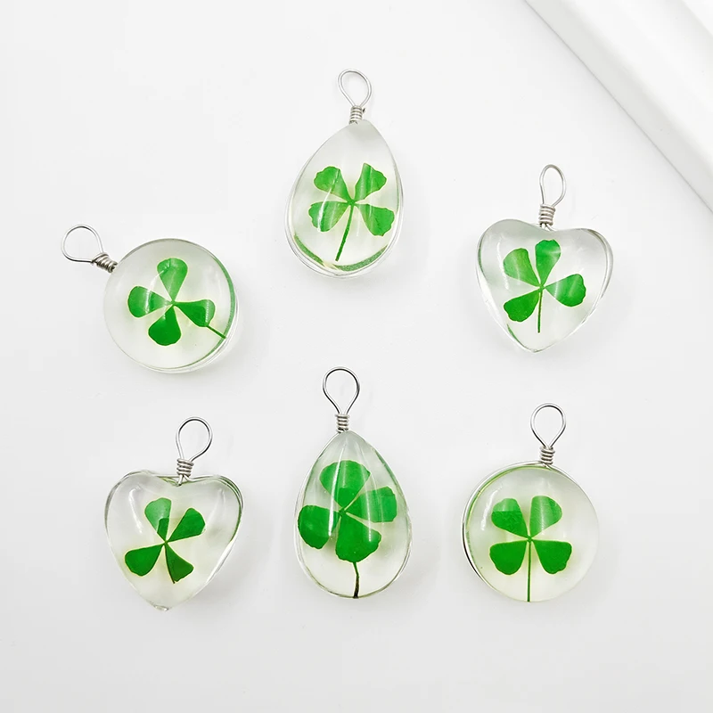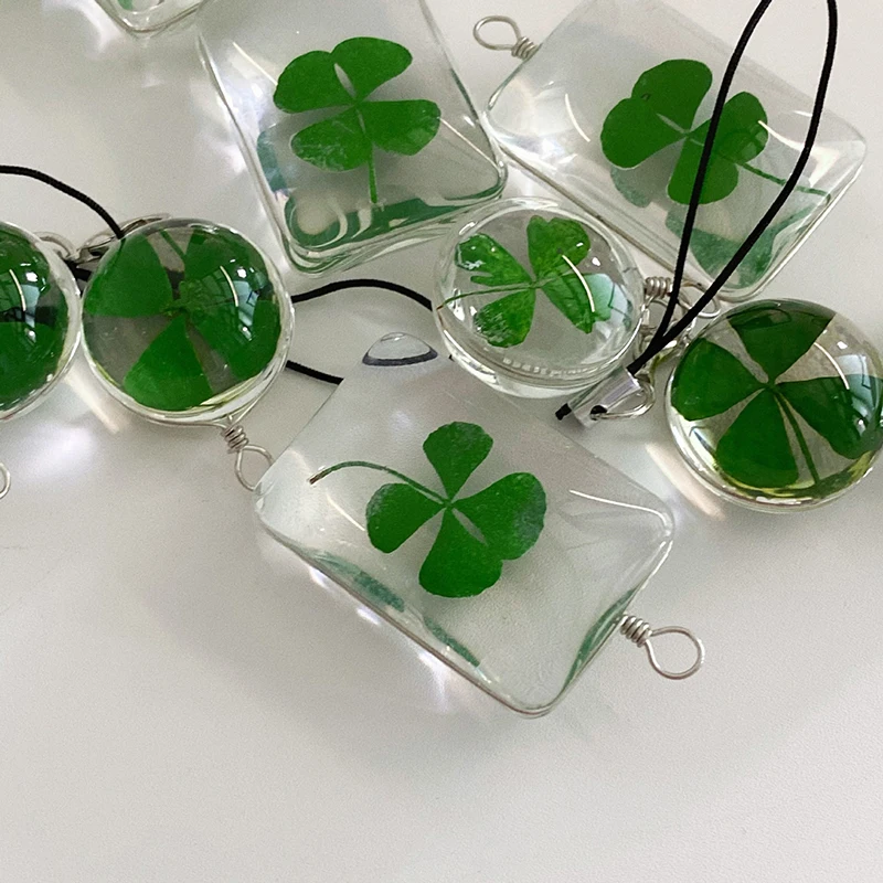 Comprar Colgante creativo hecho a mano con trébol de cuatro hojas de la suerte, bonito colgante de flor de cadena dulce para niña