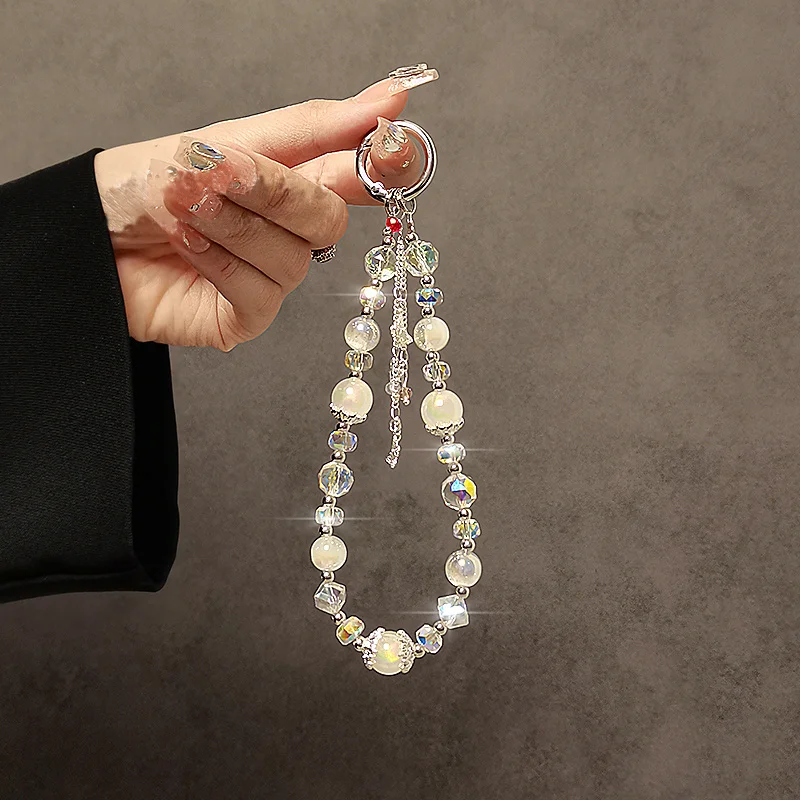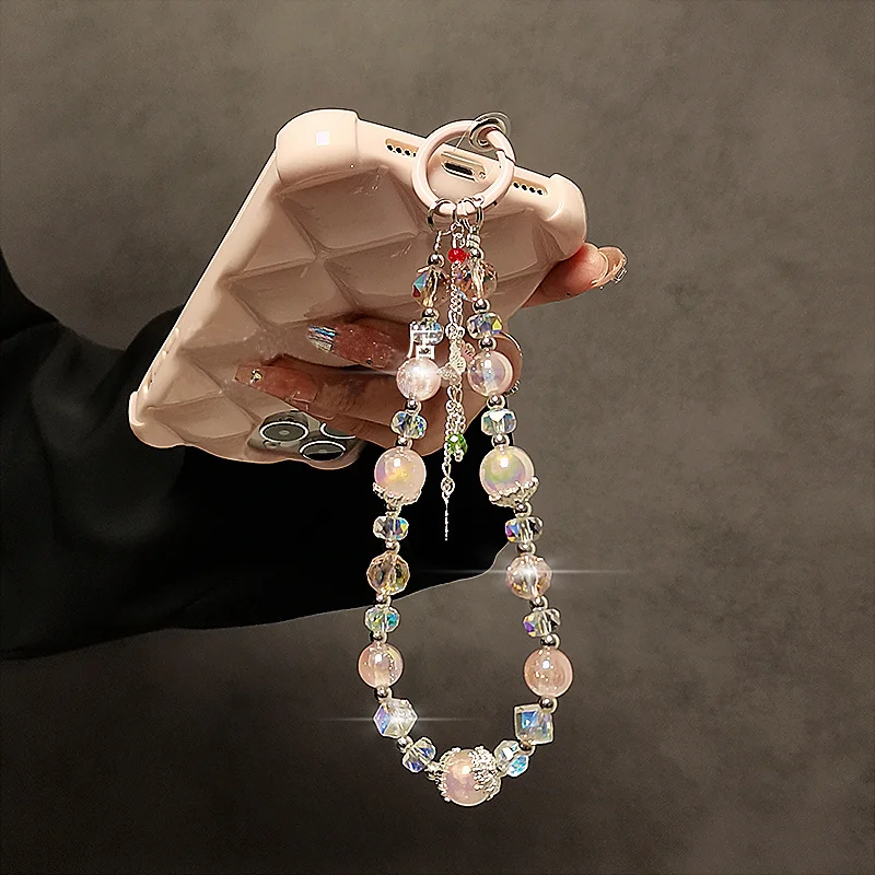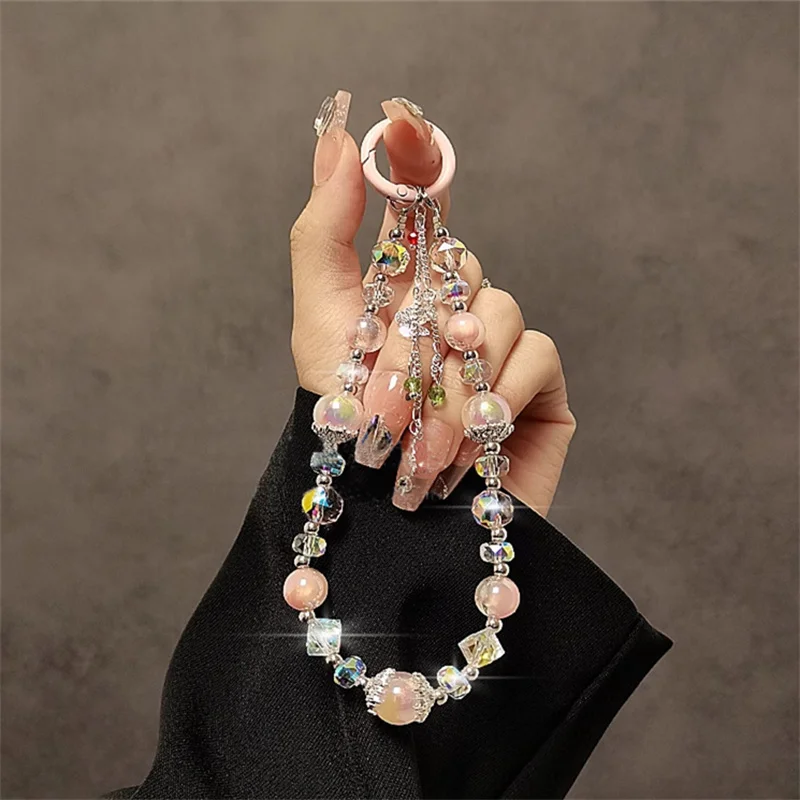 Colgante de mariposa de lujo de alta gama, cadena de mano con cuentas de cristal, cuerda colgante corta para muñeca con Clip, funda para teléfono, llavero, colgante para bolso