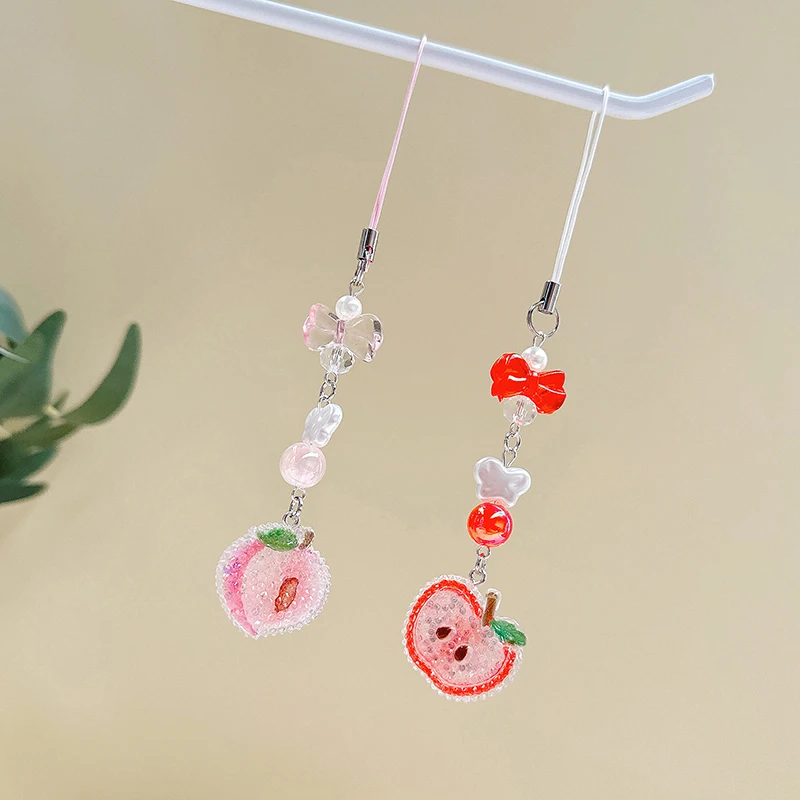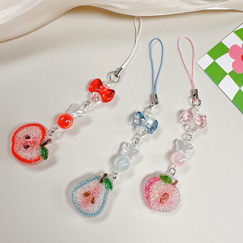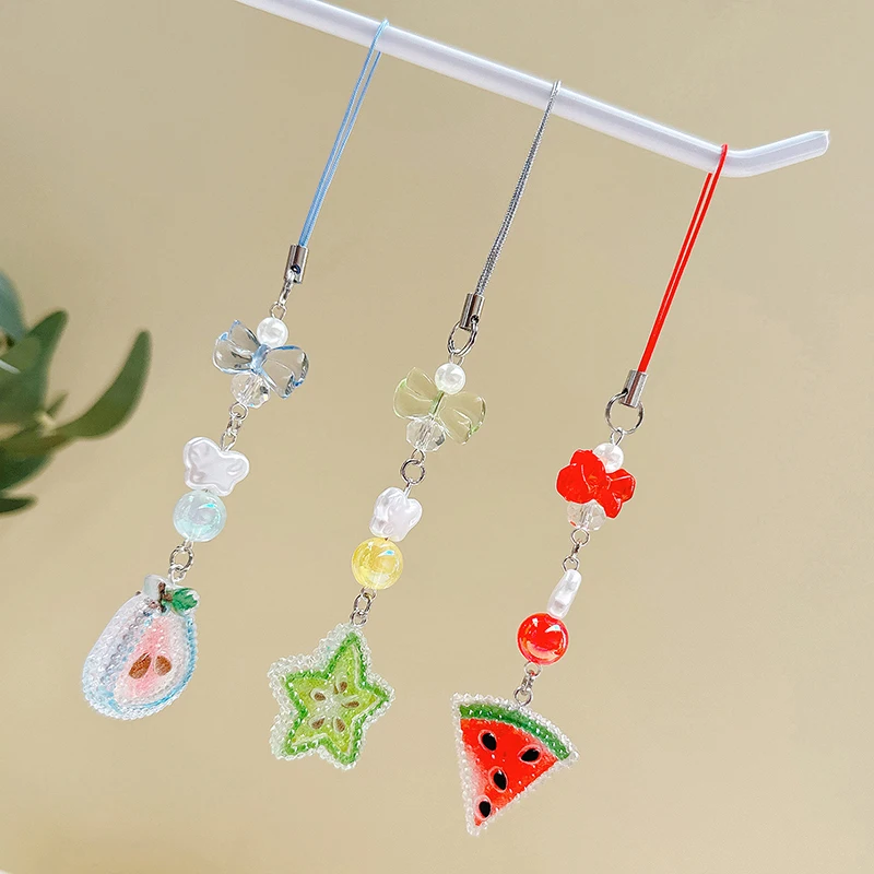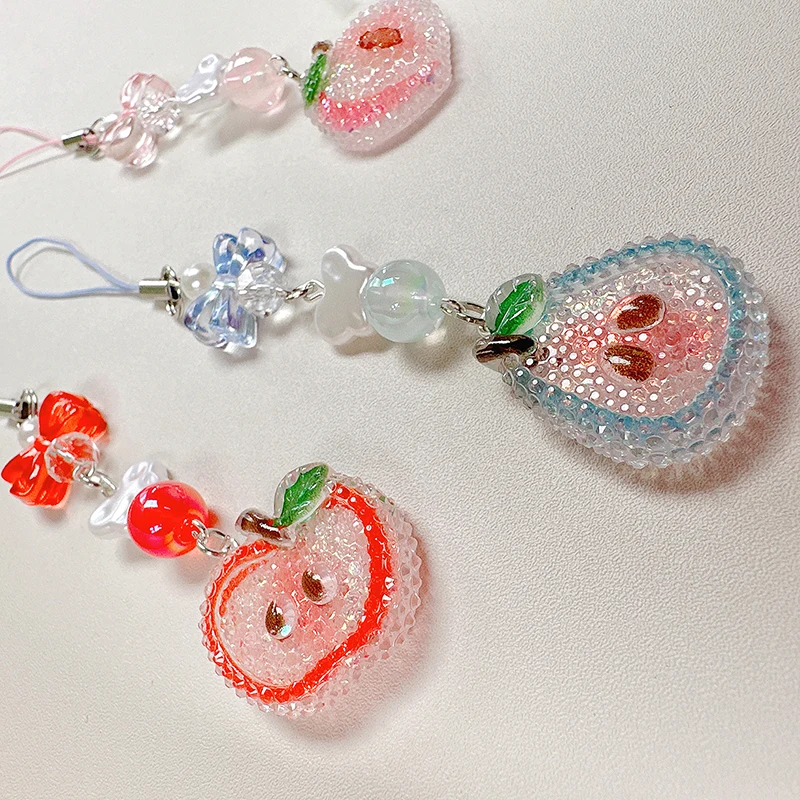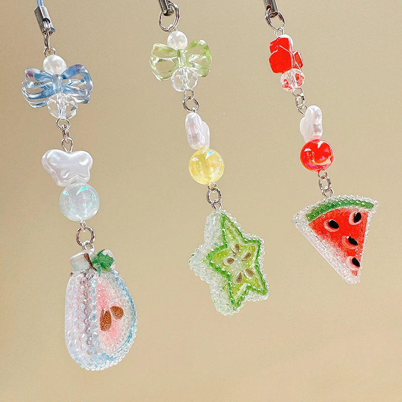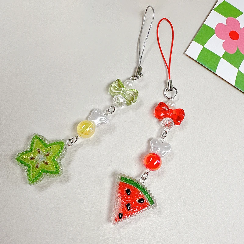 Comprar Colgante de teléfono para niñas, bonito Cordón de teléfono móvil de sandía de fresa, cadena de teléfono con frutas encantadoras, llavero de teléfono estético