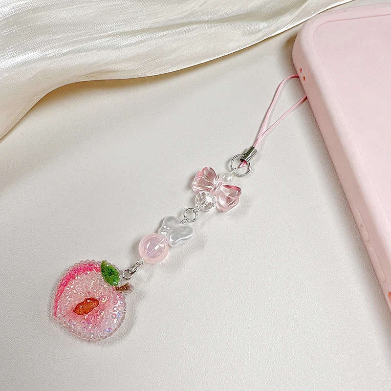 Comprar Colgante de teléfono para niñas, bonito Cordón de teléfono móvil de sandía de fresa, cadena de teléfono con frutas encantadoras, llavero de teléfono estético