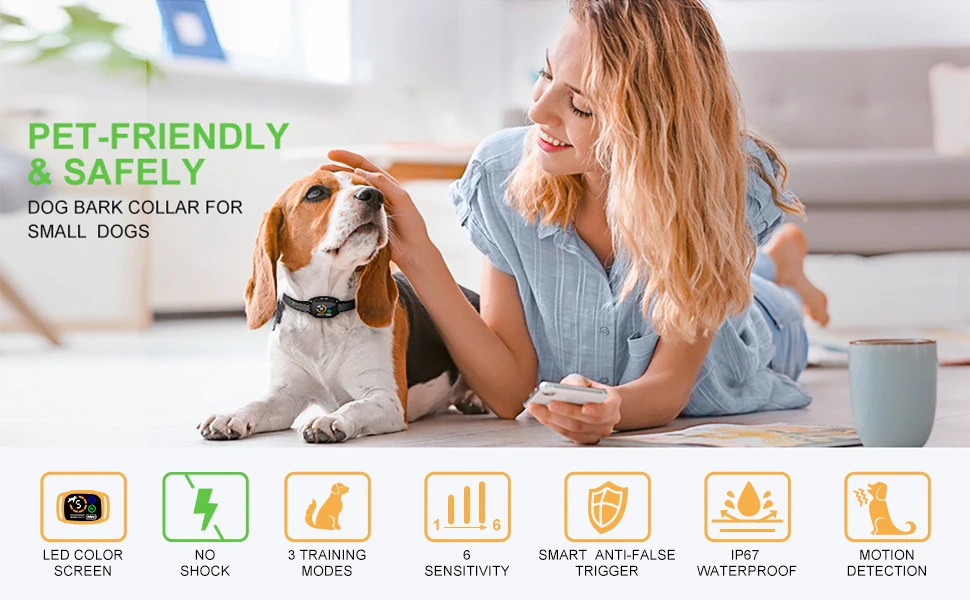 🦴 【Pantalla más clara】El collar de corteza para perros pequeños está equipado con una pantalla a color inteligente que muestra claramente el estado de trabajo y el nivel de potencia. Permanece claro y fácil de leer tanto bajo la luz del sol como en la noche oscura. El collar de corteza para perros con luz LED de color facilita la localización de tu perro, asegurando que puedas encontrarlo de cerca por la noche.