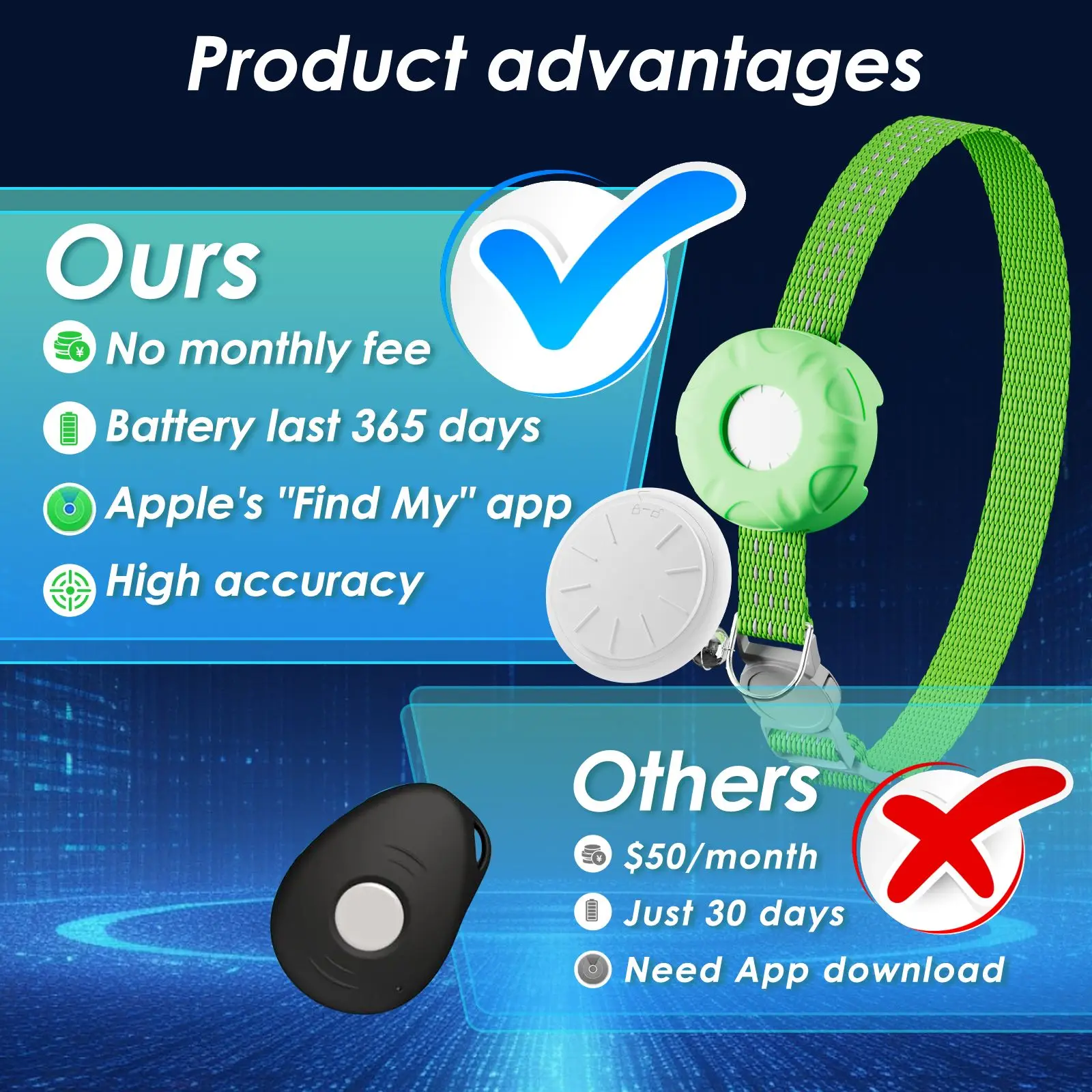 ·【Sin tarifa mensual】Este rastreador de gatos no requiere una tarifa mensual.Simplemente descargue la aplicación 'Encuentrame' para rastrear directamente a sus queridas mascotas, como perros y gatos.Toda la comunicación en la red Find My es anónima y está cifrada para proteger su privacidad.(Solo compatible con el sistema iOS).