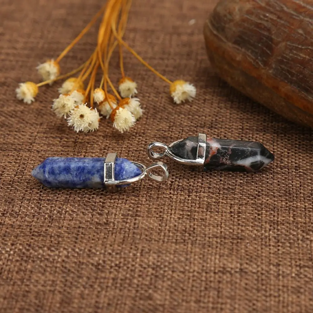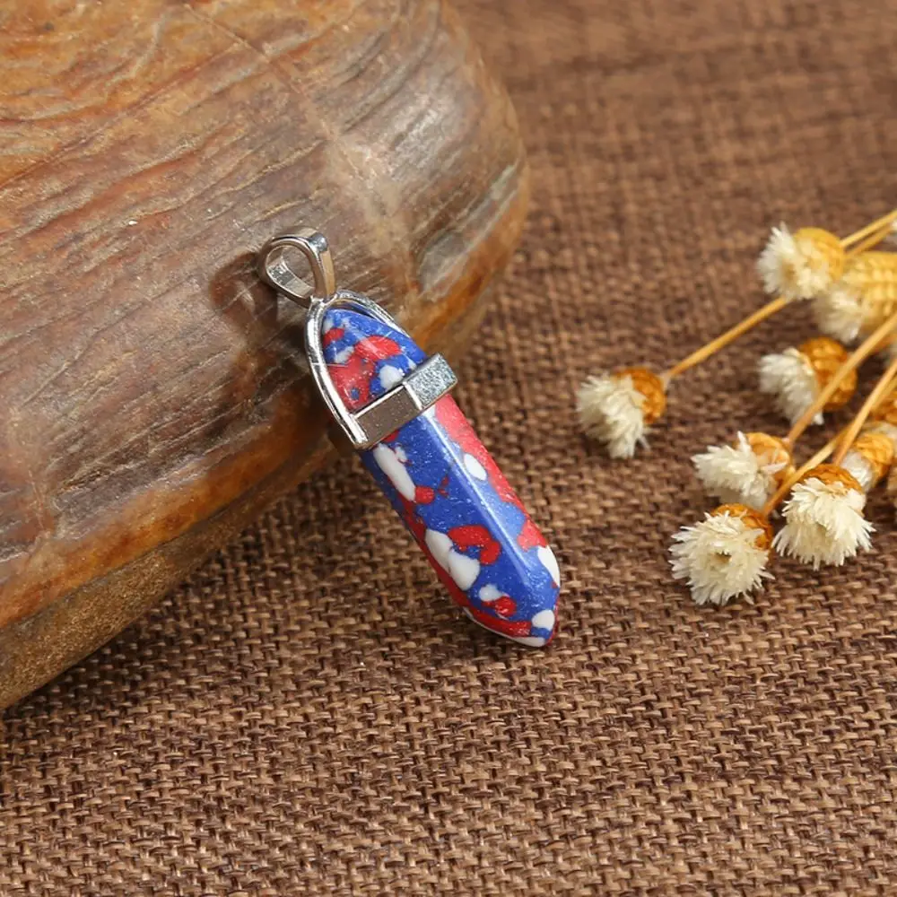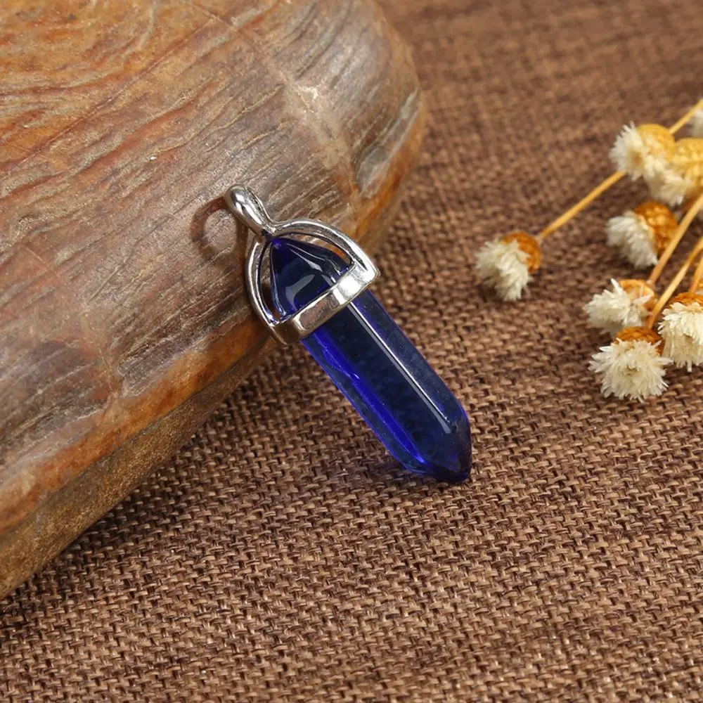 Comprar Collares colgantes de columna hexagonal, cristal curativo, cuarzo, fluorita, lapislázuli, Péndulo de bala, joyería de Chakra
