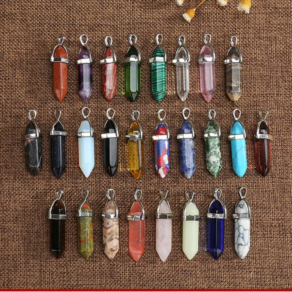 Comprar Collares colgantes de columna hexagonal, cristal curativo, cuarzo, fluorita, lapislázuli, Péndulo de bala, joyería de Chakra