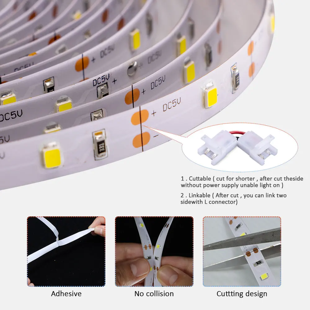 Comprar ColorRGB, tira de luz LED, SMD2835,30 M/metro, blanco/blanco cálido, puerto USB, luces de cuerda LED flexibles para armario de cocina y dormitorio