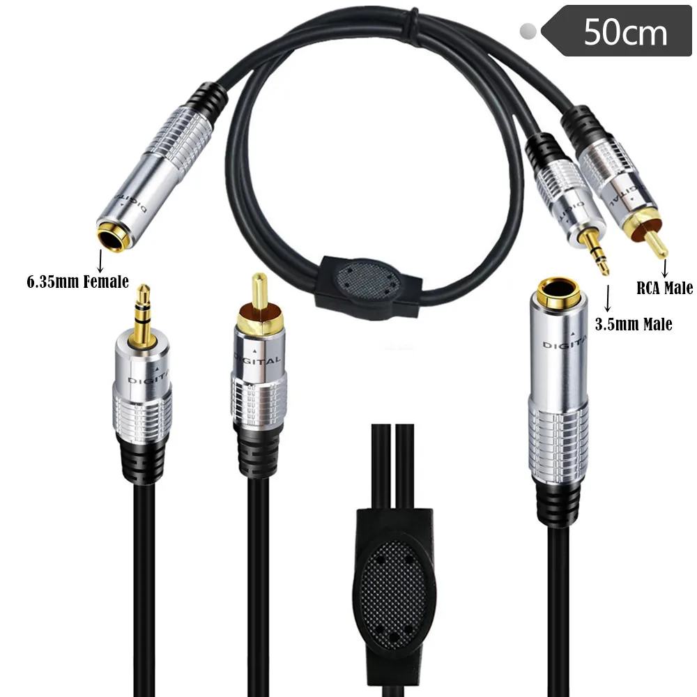 3.5mm 1/8" Male to 6.35mm 1/4" Female TRS Stereo Audio Cable,6.35mm Female to RCA Male Audio Cable Extension Cord 0.5M