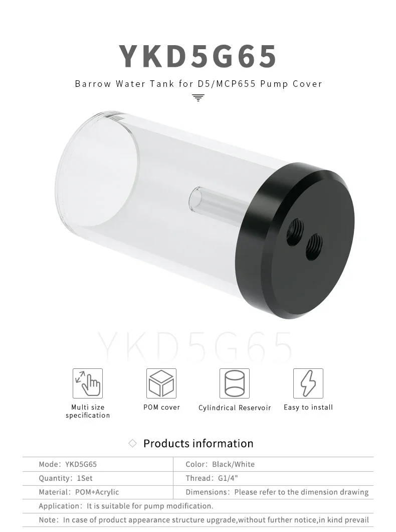 Combinación de tanque de agua con bomba Barrow D5 PWM 18W, flujo máximo 1260L/H, tanque de agua acrílico, multicolor opcional