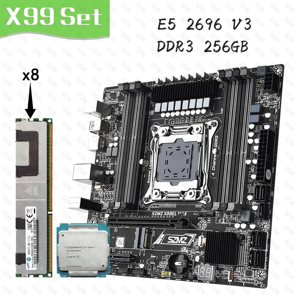 Comprar Combo de placa base X99 y CPU E5-2696v3 con paquete de RAM DDR3-1866 de 8x32 GB Compatible con el kit de servidor E5 V3 V4