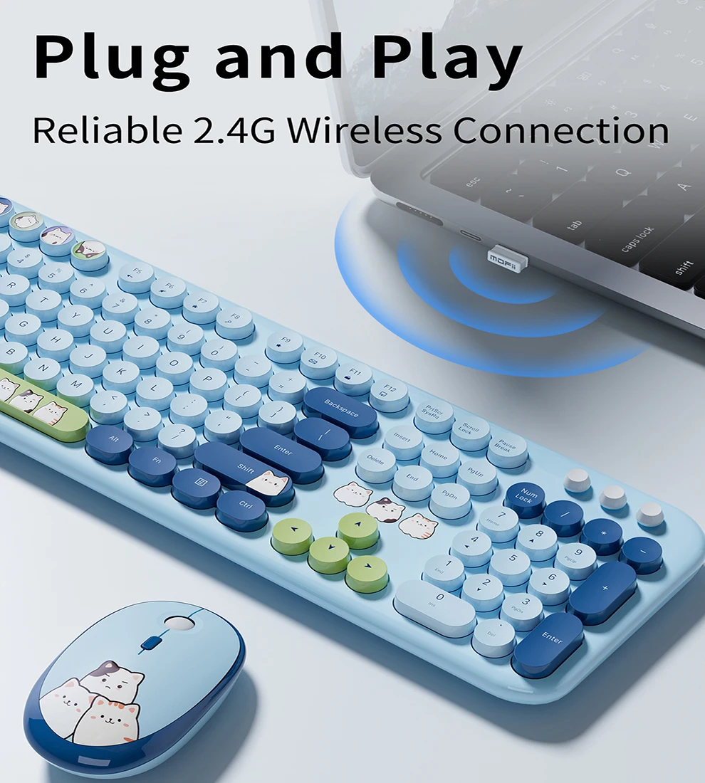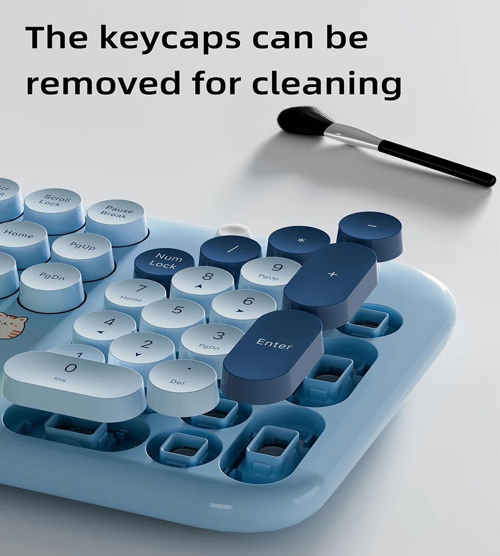 LLAVES REDONDO: El teclado adopta teclas redondas retro que brindan alta suavidad y excelente sensación al tacto.Añadiendo más diversión a tu trabajo y estudio.