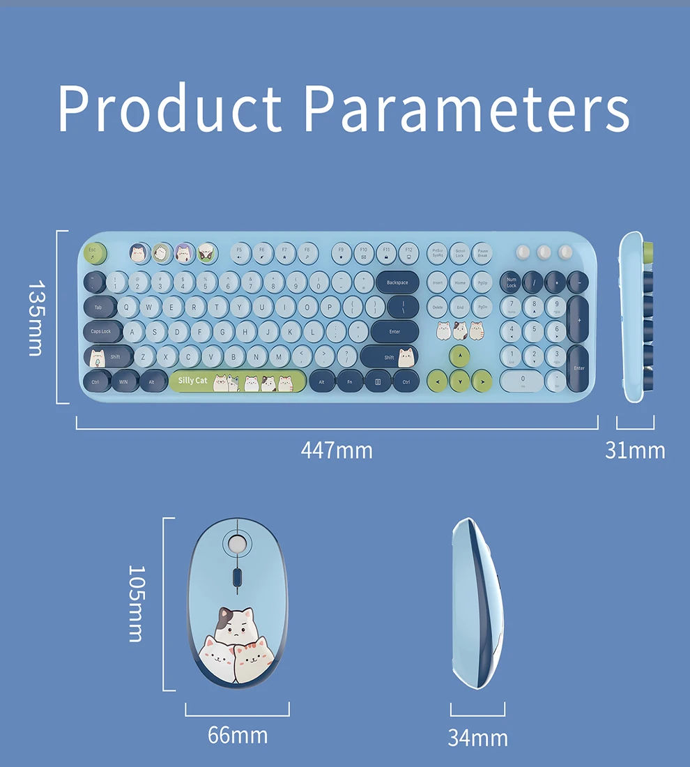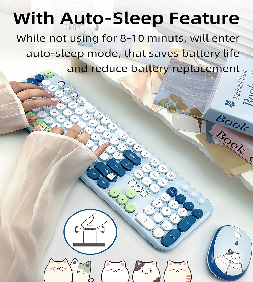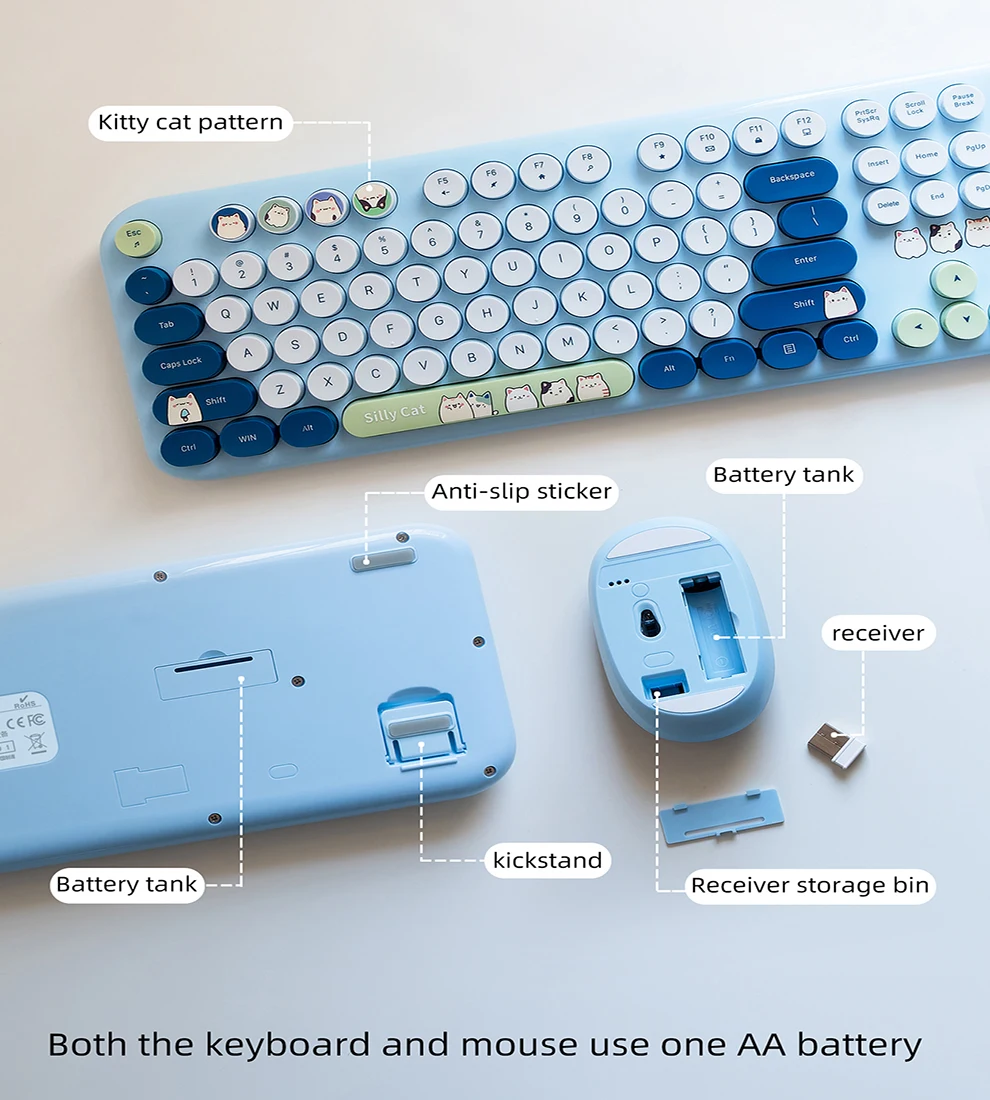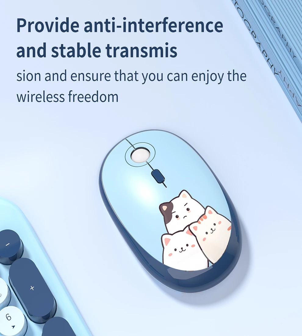 TEMA KITEN: Este combo de teclado y ratón presenta un lindo diseño de gatito en colores vibrantes, que es cómodo y llamativo.