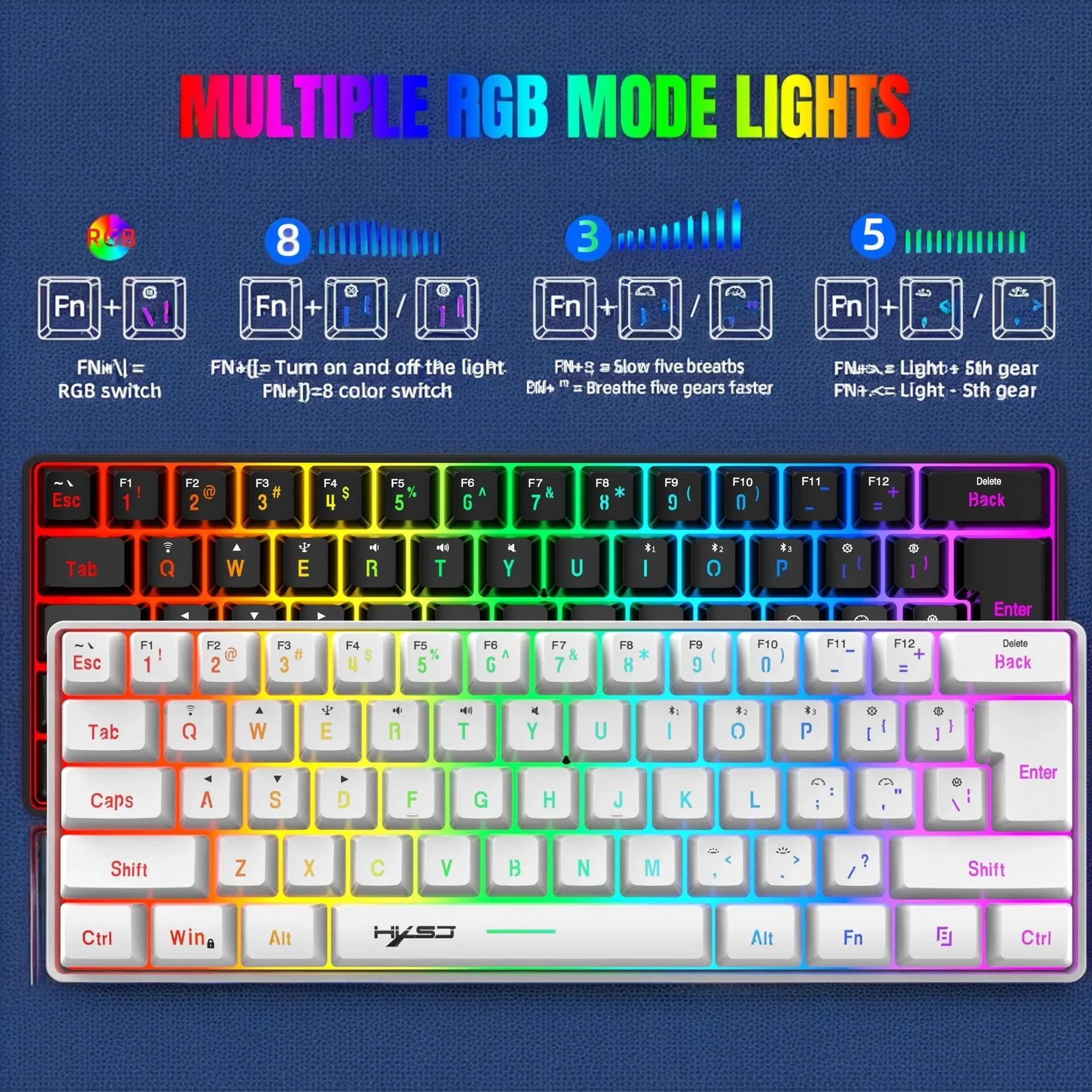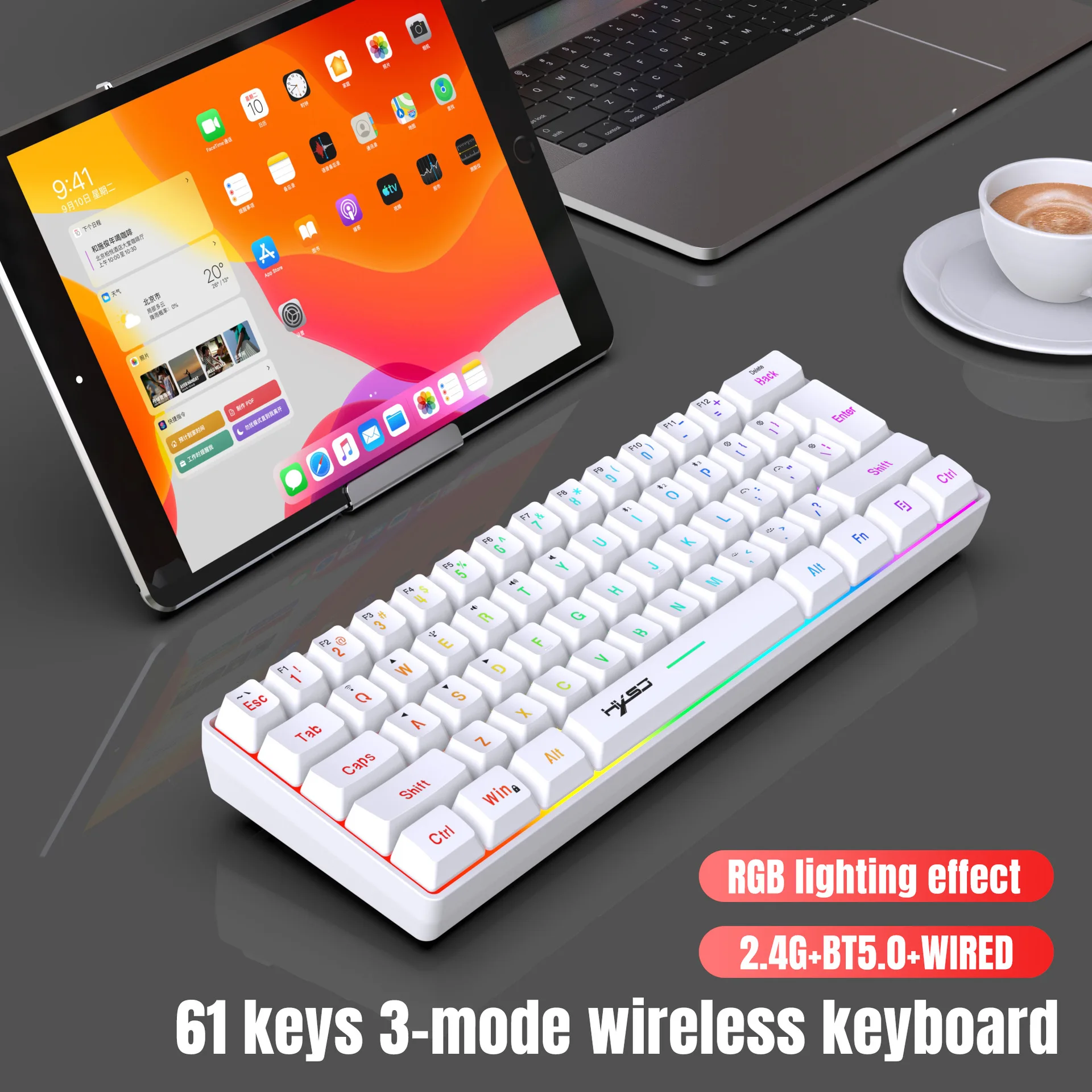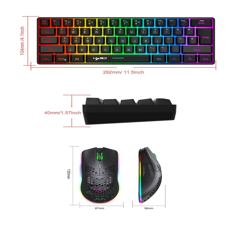 Comprar Combo de teclado y ratón inalámbrico, kit 60% con teclado Bluetooth, 2,4 Ghz, teclados para jugadores blancos, juego de combos de ratón, teclado y pc