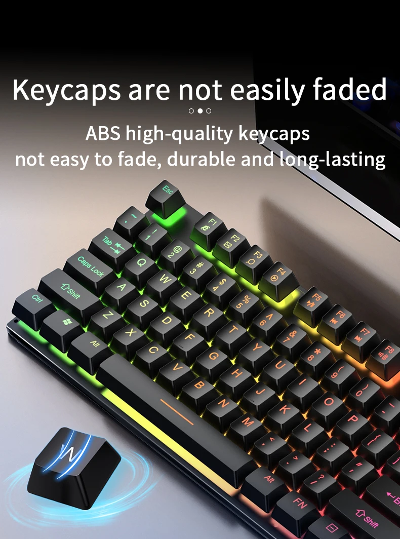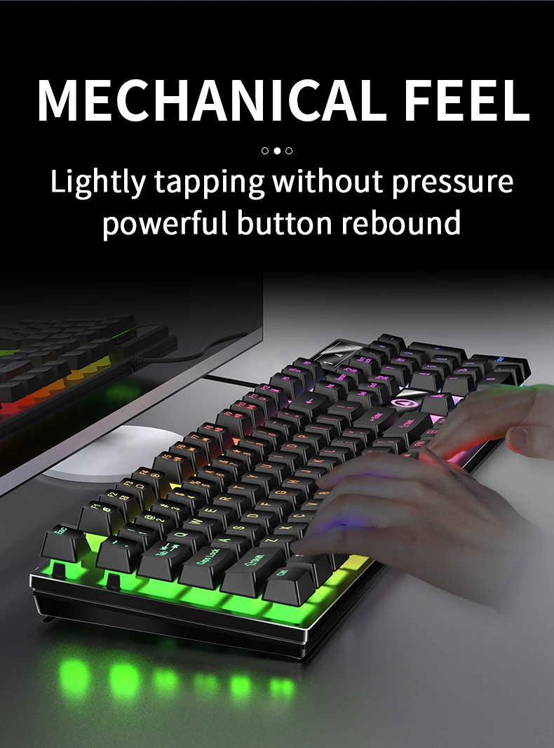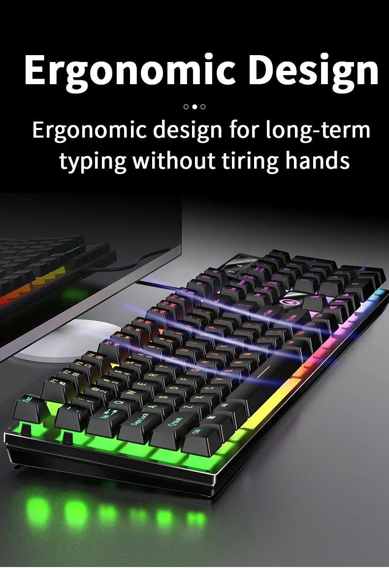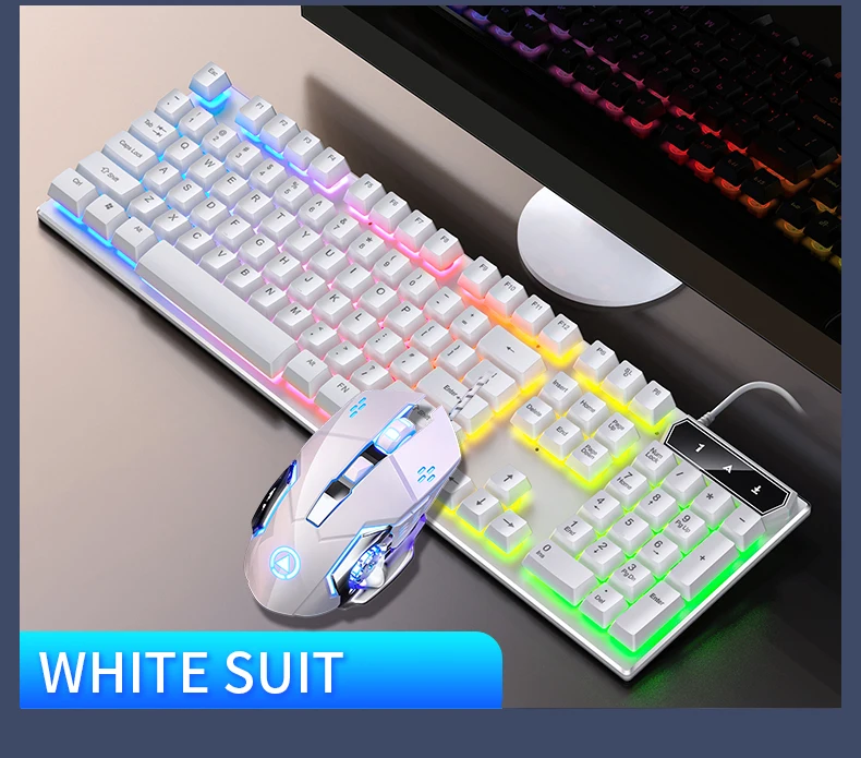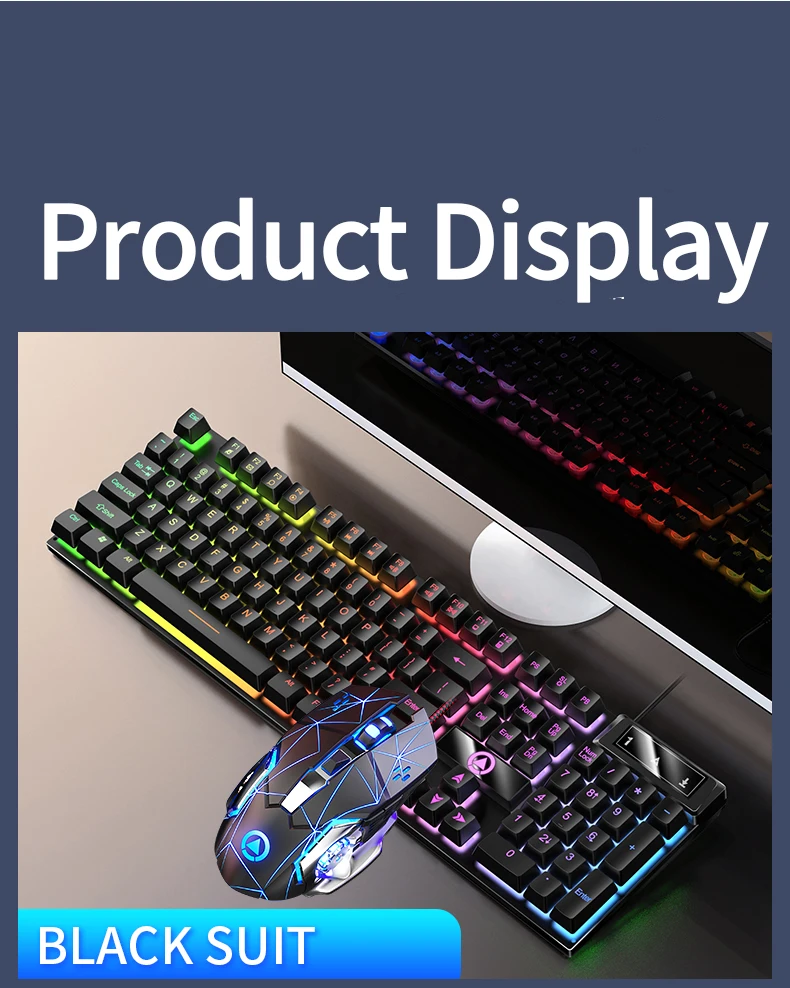 Combo de teclado y ratón retroiluminado con cable, USB, sensación mecánica ergonómica, juego de teclado y ratón para escritorio, portátil, PC y hogar