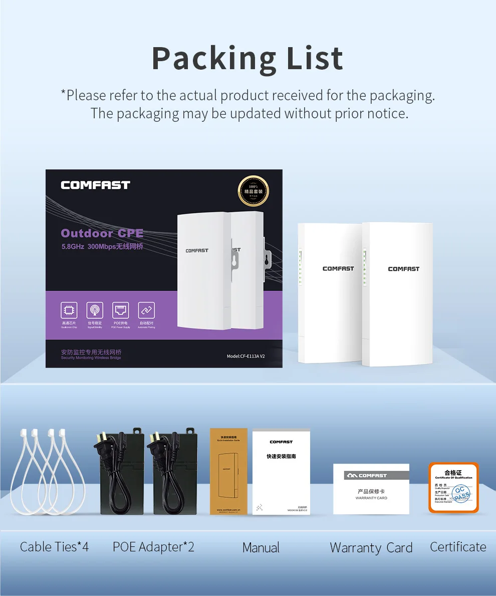 CF-E113A V2:300Mbps 5,8G3KM 2 uds.1*10/100Mbps WAN/LAN RJ45