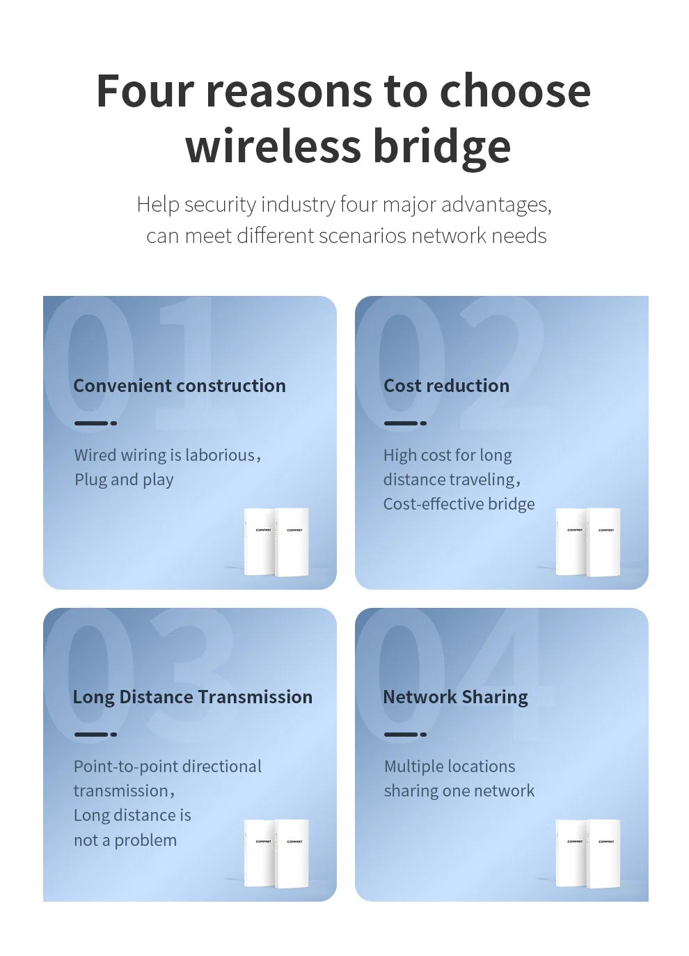 CF-E112N V2:300Mbps2,4G1 KM 2 piezas1*10/100Mbps WAN/LAN RJ45