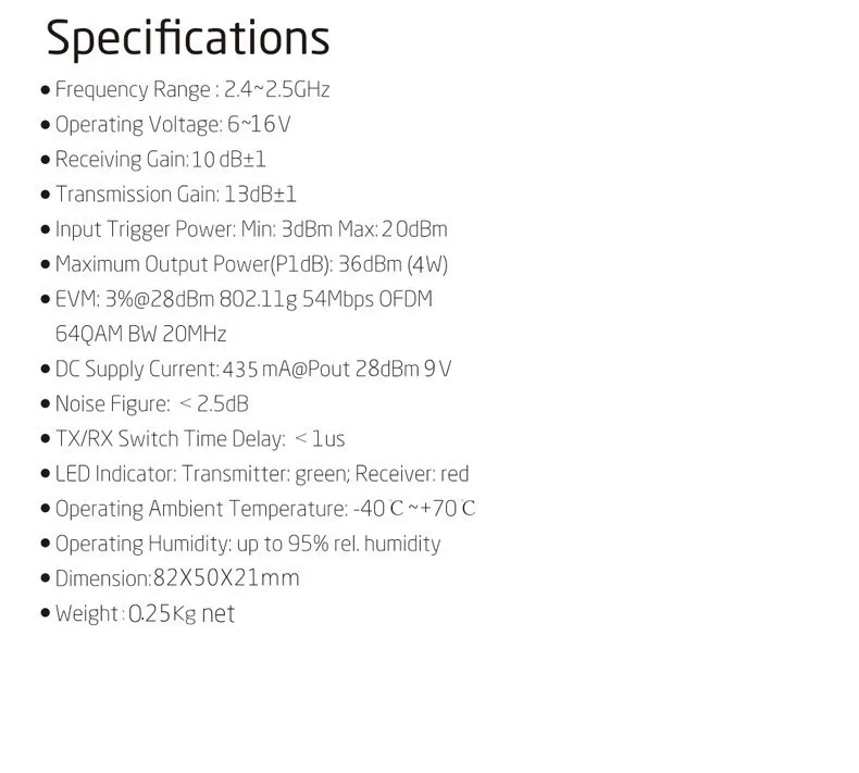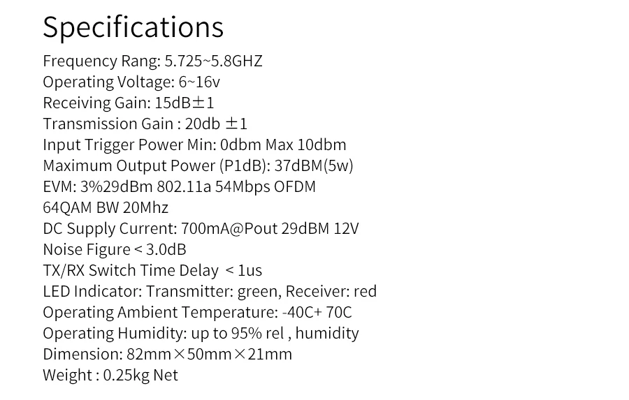Potencia de salida máxima (P1dB):37dBM (5W)
