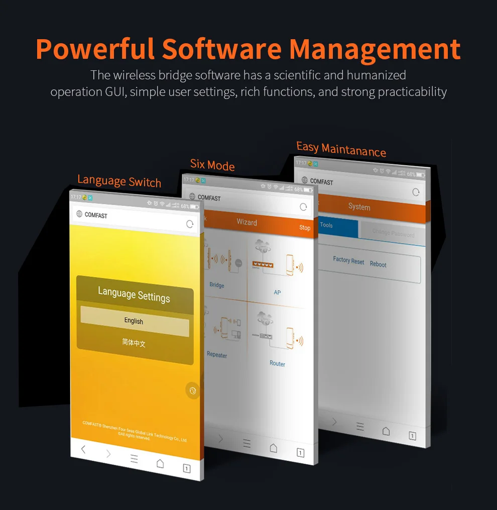 Potente gestión de software El software de puente inalámbrico tiene una operación científica y humanizada, configuraciones sencillas para el usuario, funciones ricas y gran practicidad.
