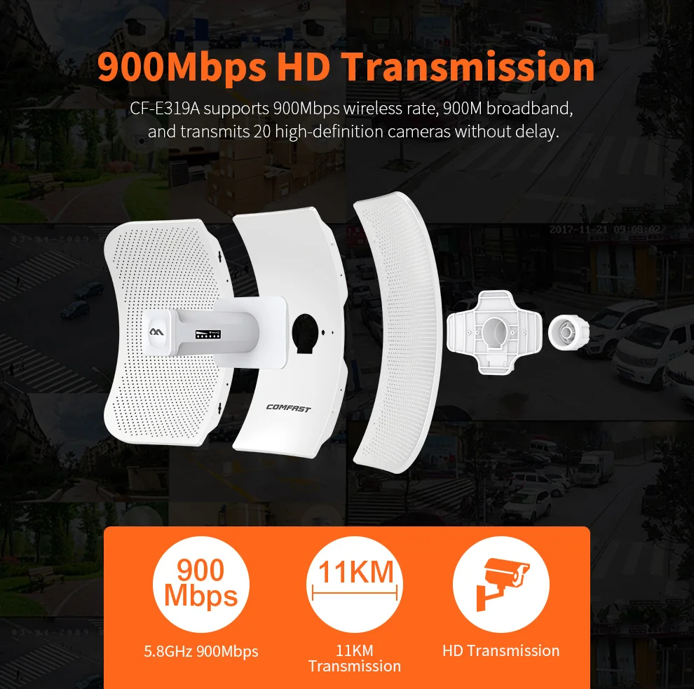 Transmisión HD de 900 MbpsCF-E319A admite una velocidad inalámbrica de 900 Mbps, una banda ancha de 900 M y transmite 20 cámaras de alta definición sin demora.