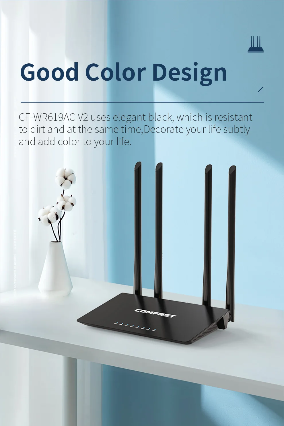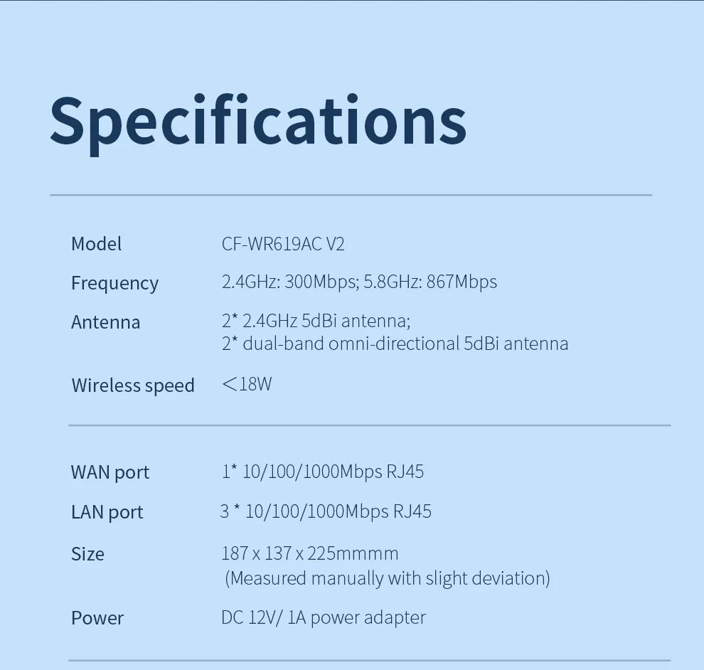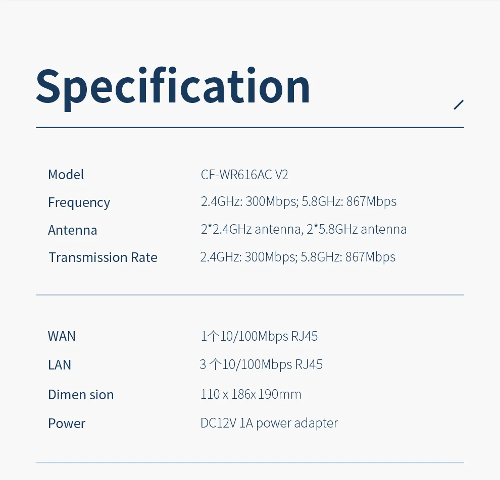 CF-WR619ACV2 es unEnrutador Gigabit completo doméstico de doble banda de 1200 Mbps, Velocidad Gigabit + puerto Gigabit Ethernet completo,