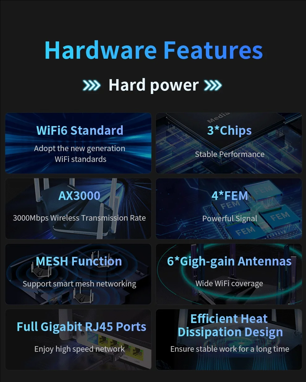 6. 1*10/100/1000MbpsPuerto Ethernet RJ45 WAN