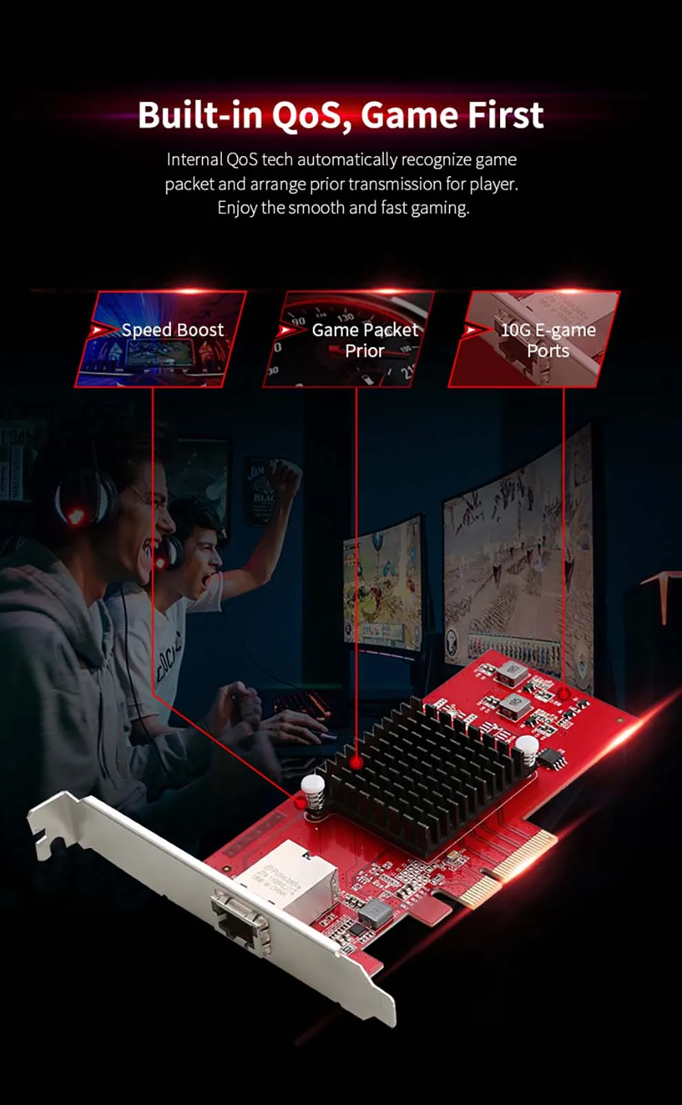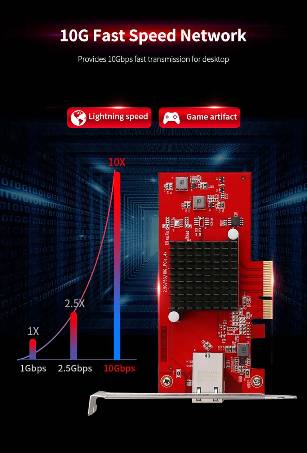 Comprar Comfast-Adaptador inalámbrico PCI-E Gigabit, 10Gbps, AQC107, tarjeta de red de escritorio para videojuegos, 10G/5G/2,5G/1G, transmisión rápida Win 7/8/10/11
