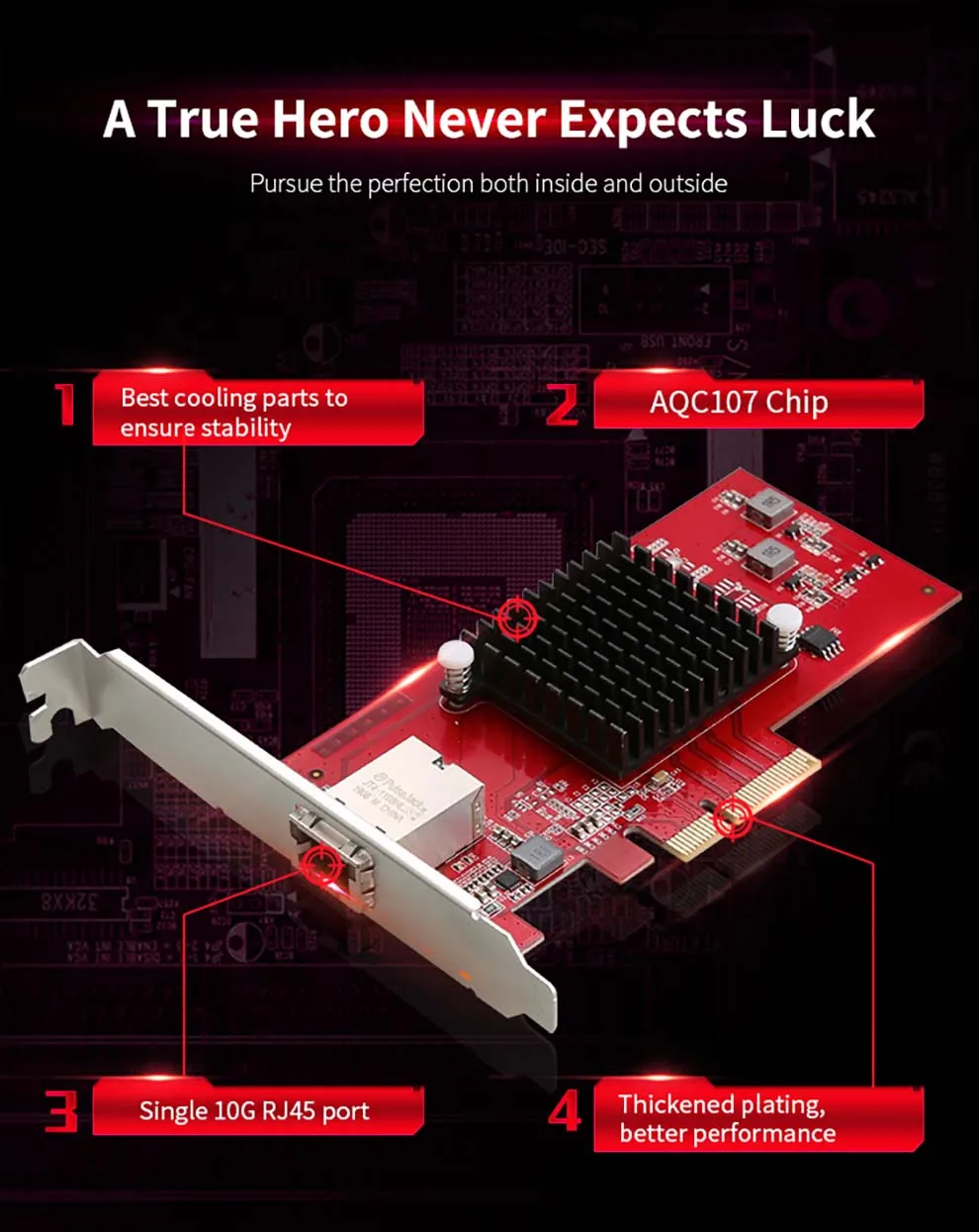 5. Equipped with a standard RJ45 port, allowing you to upgrade to 10G network through standard copper network cables