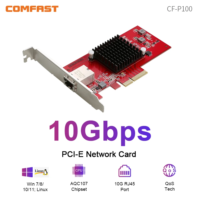 Comprar Comfast-Adaptador inalámbrico PCI-E Gigabit, 10Gbps, AQC107, tarjeta de red de escritorio para videojuegos, 10G/5G/2,5G/1G, transmisión rápida Win 7/8/10/11