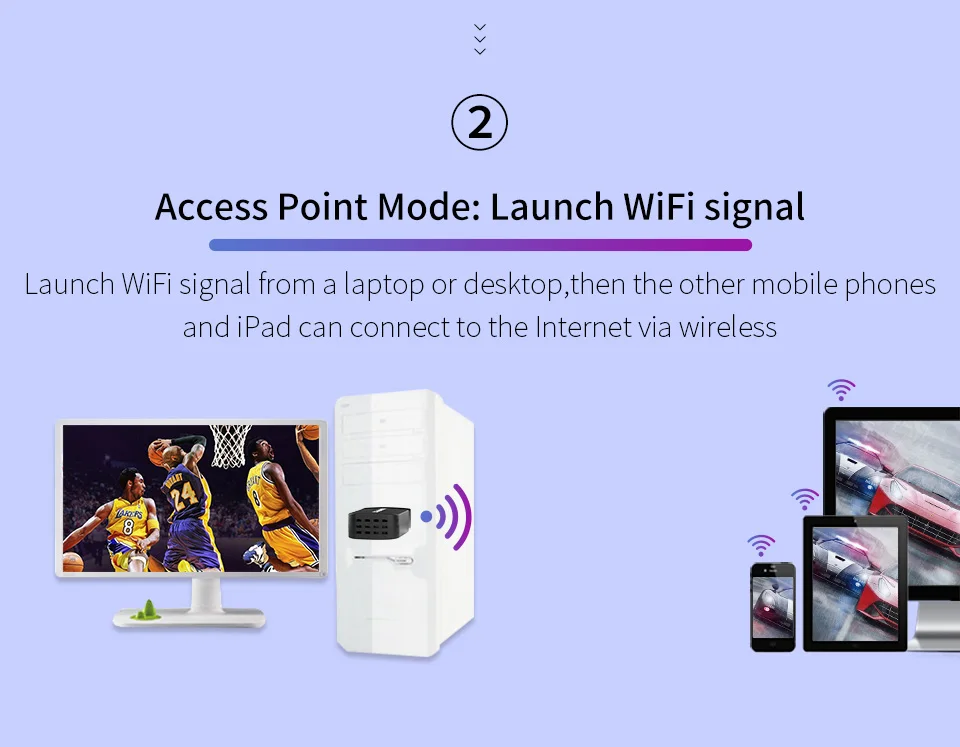 Inicie la señal WiFi desde un ordenador portátil o de escritorio, luego los otros teléfonos móviles y el iPad pueden conectarse a Internet de forma inalámbrica