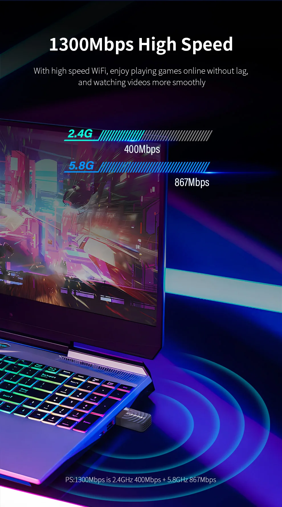 1300Mbps | Banda dual de 2,4G y 5,8 GHz | Recepción y transmisión WiFi