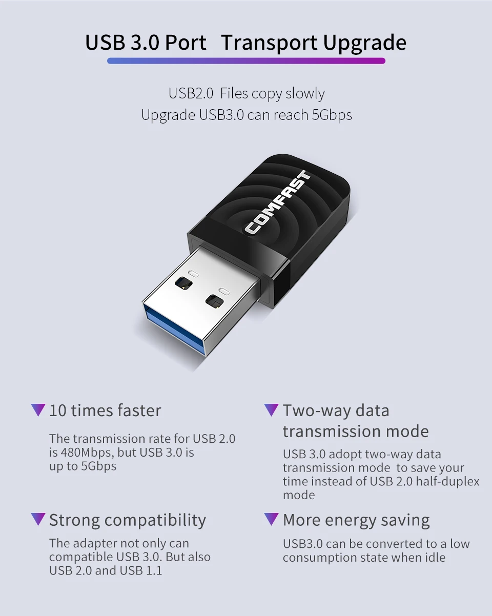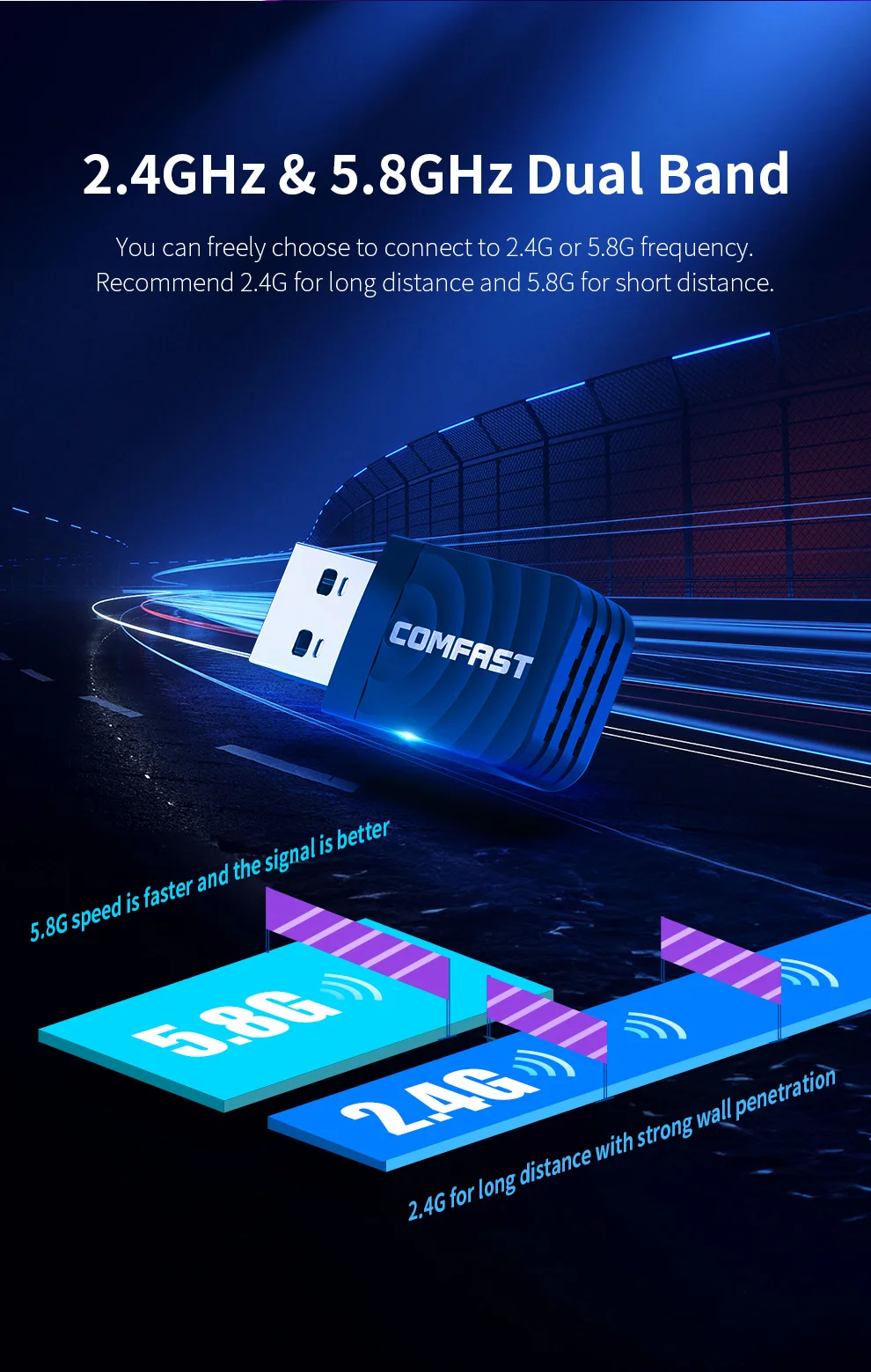 Adaptador WiFi USB COMFAST de 1300Mbps, tarjeta de red de banda de 2,4 Dual/5,8G, antena WiFi Gigabit, Dongle inalámbrico de Ap