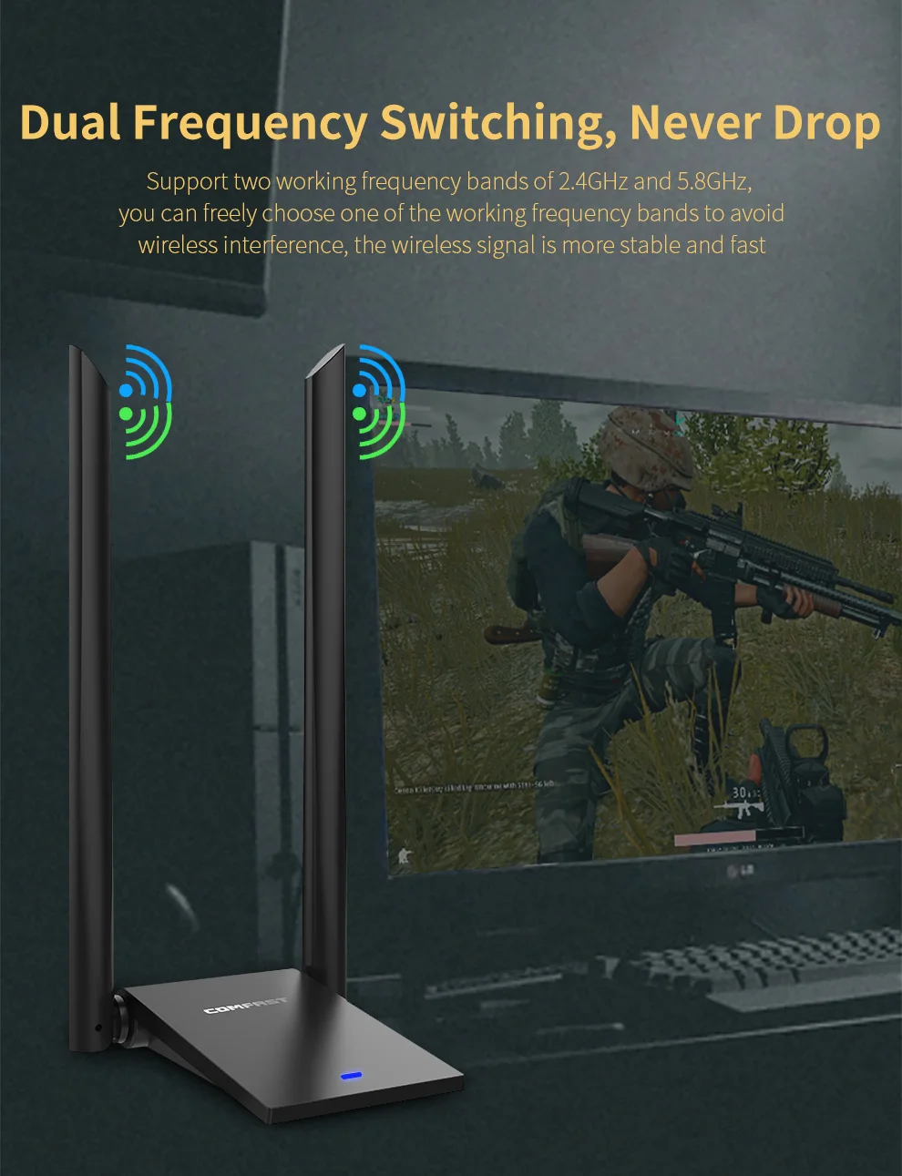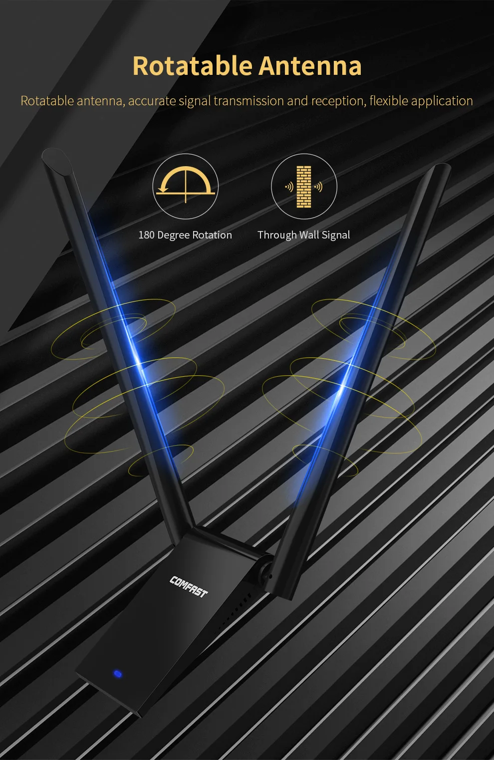 COMFAST Adaptador WiFi USB3.0 Antena Dual de 1900Mbps Tarjeta de red inalámbrica de 2,4G y 5G Adaptador WiFi Receptor Transmisor Kali Linux