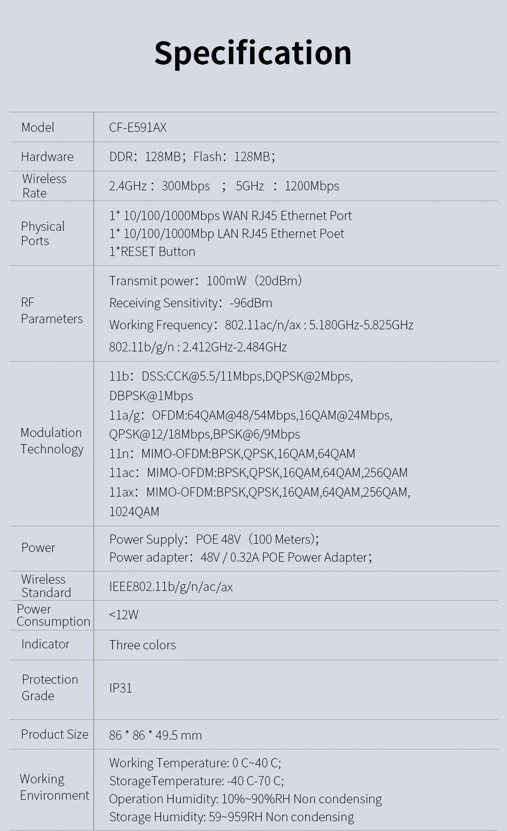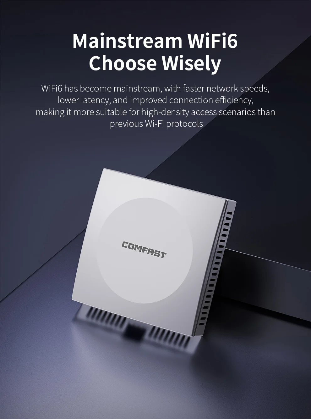 CF-E591AX es unAP de panel WiFi6 de doble banda de 1500Mbps, apoyando2,4 y 5,8 GHz, doble bandaantiinterferencias, cobertura de área grande y roaming sin interrupcionescaracterísticas.Es adecuado para diversas escenas interiores, como villas familiares, centros comerciales y supermercados, hoteles, escuelas corporativas, conferencias y exposiciones, etc.