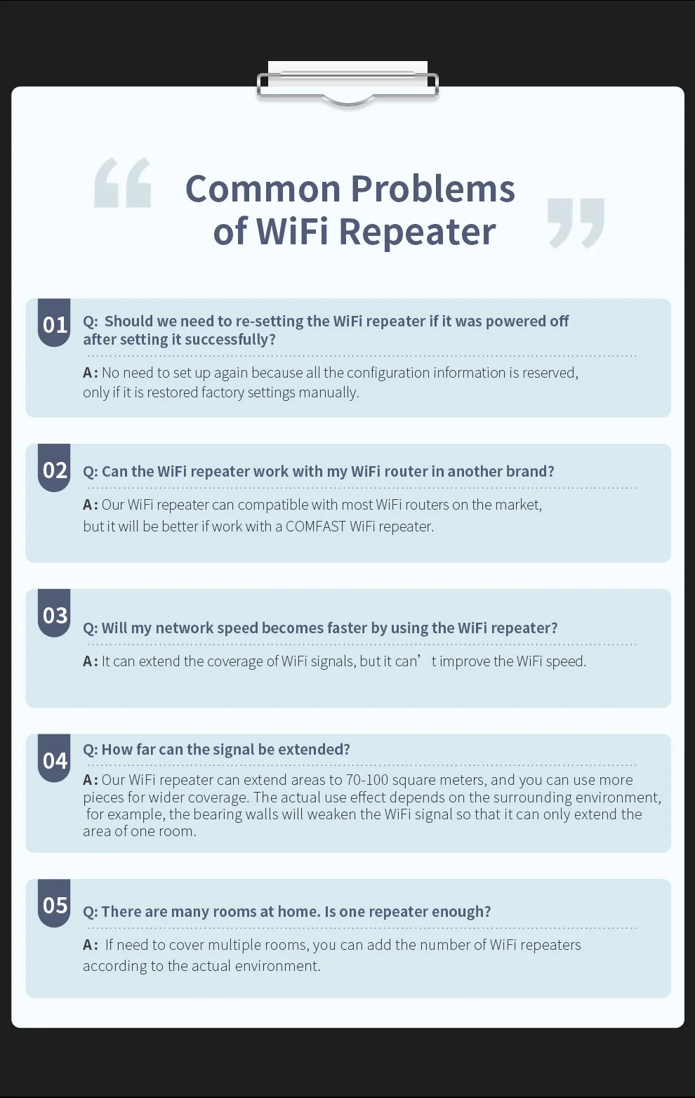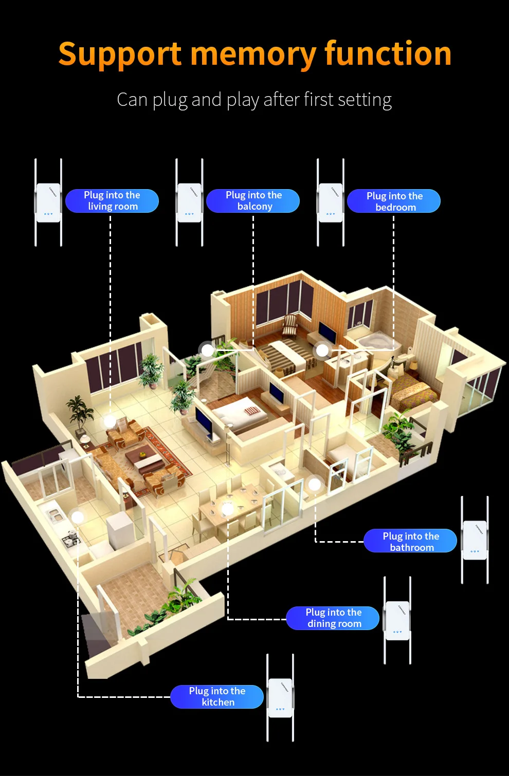 Equipado con velocidad inalámbrica de doble banda de 2974 Mbps, señal estable y funciones de configuración sencillas;Antena giratoria, ángulo de antena ajustable por el usuario para ajustar la transmisión y recepción de la señal;Adecuado para entornos domésticos como villas, dúplex y apartamentos grandes. La extensión de señal WiFi resuelve eficazmente el problema de los puntos ciegos de la señal y es un buen producto doméstico para hogares grandes y complejos.