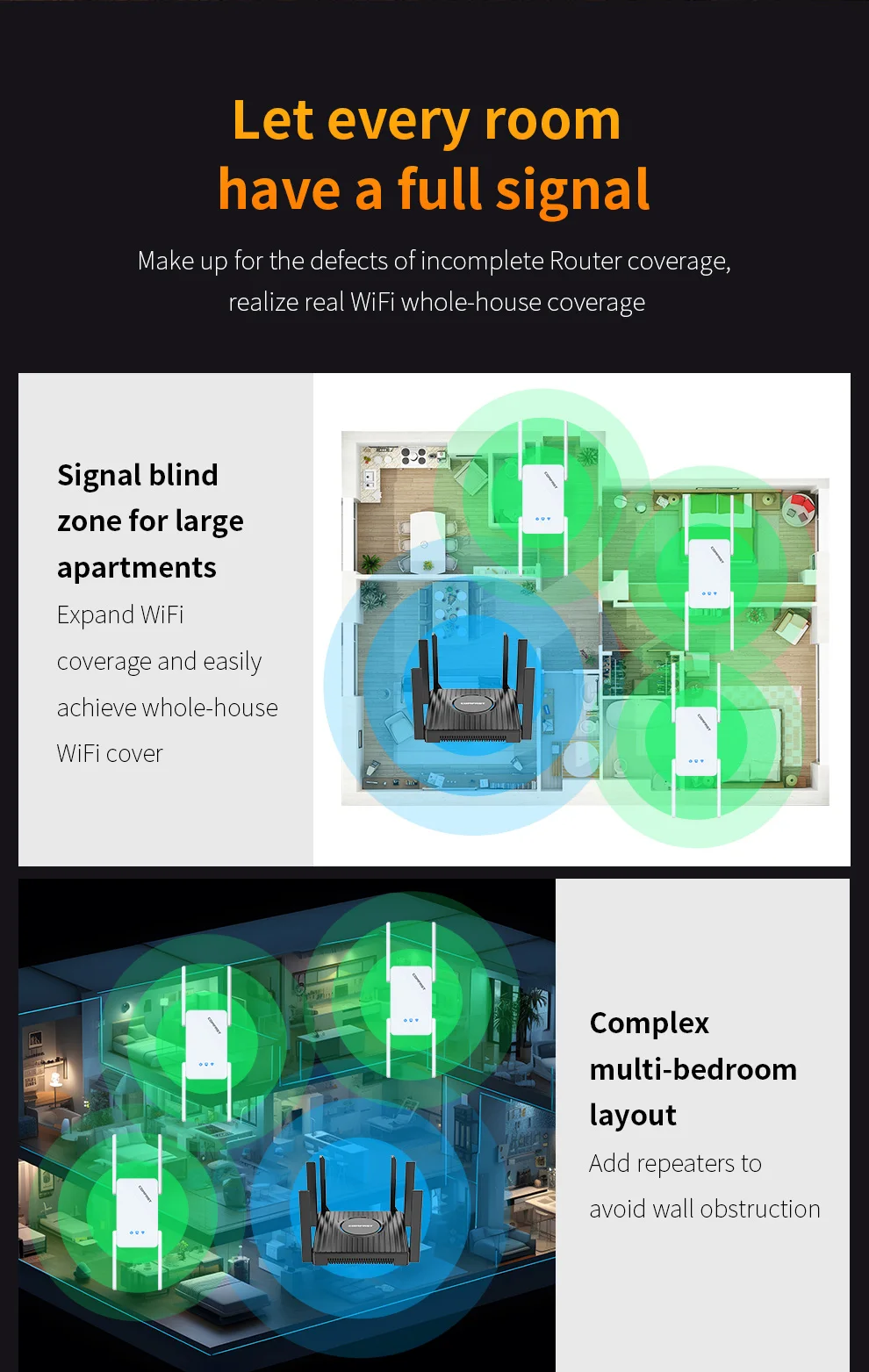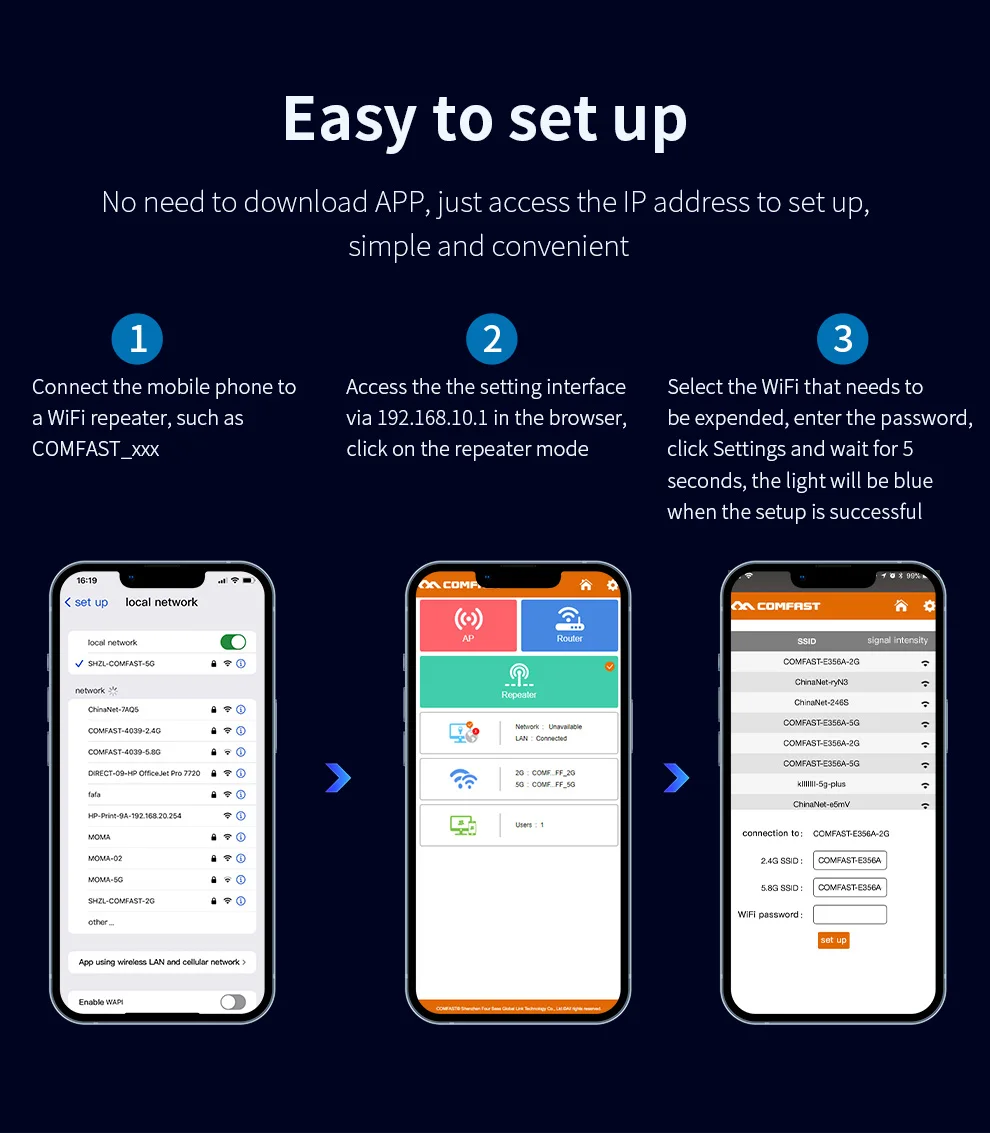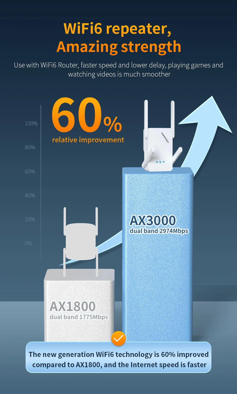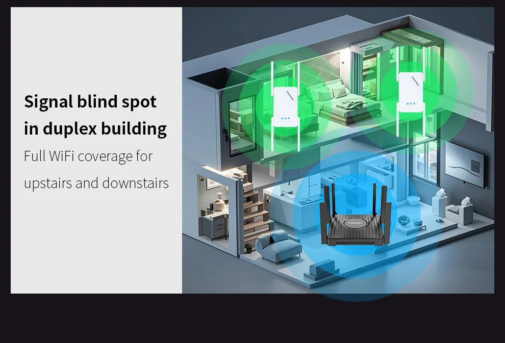 Comfast AX3000/AX1500 WiFi 6 repetidor 2,4G y 5GHz extensor inalámbrico de doble banda Repetidor Wi-Fi amplificador de señal red de largo alcance