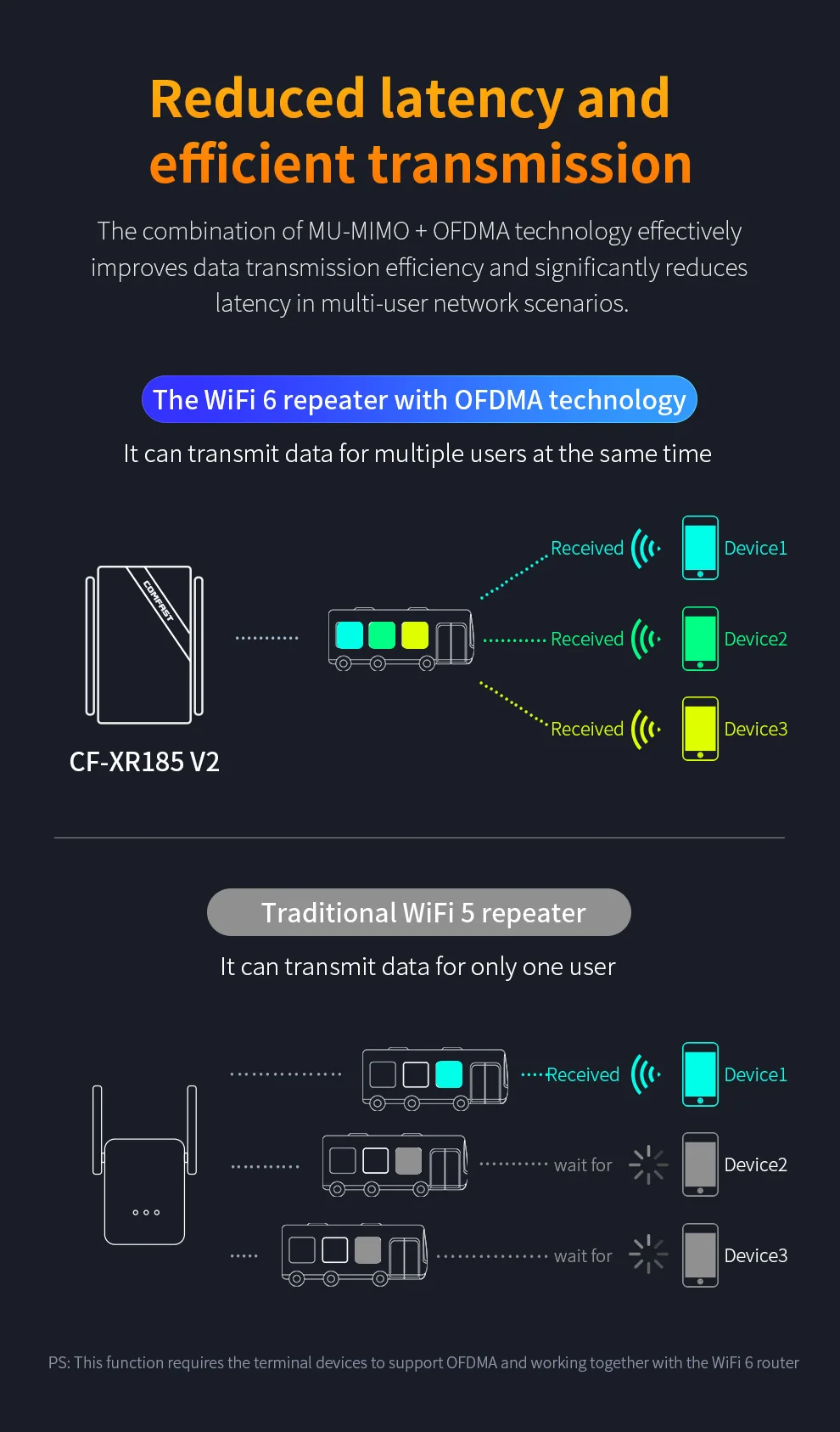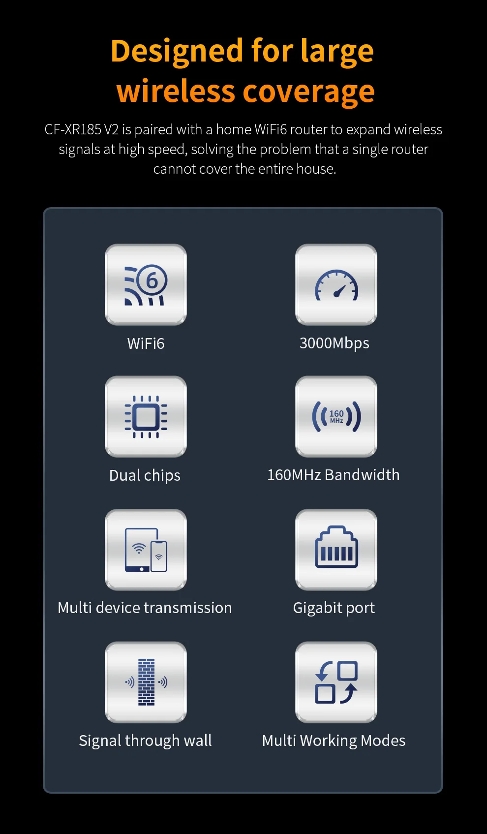 CF-XR185V2 es un repetidor inalámbrico WiFi 6 que extiende las señales de inicio, se adapta al enrutamiento WiFi 6 y tiene