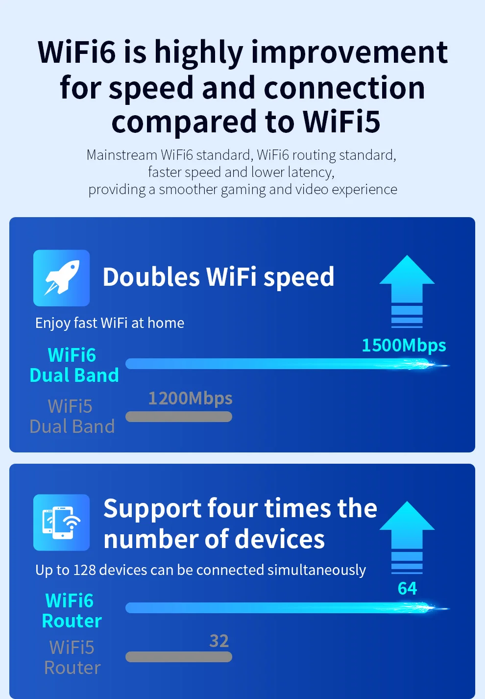 1.Tecnología WiFi6, más compatible con el enrutador WiFi6