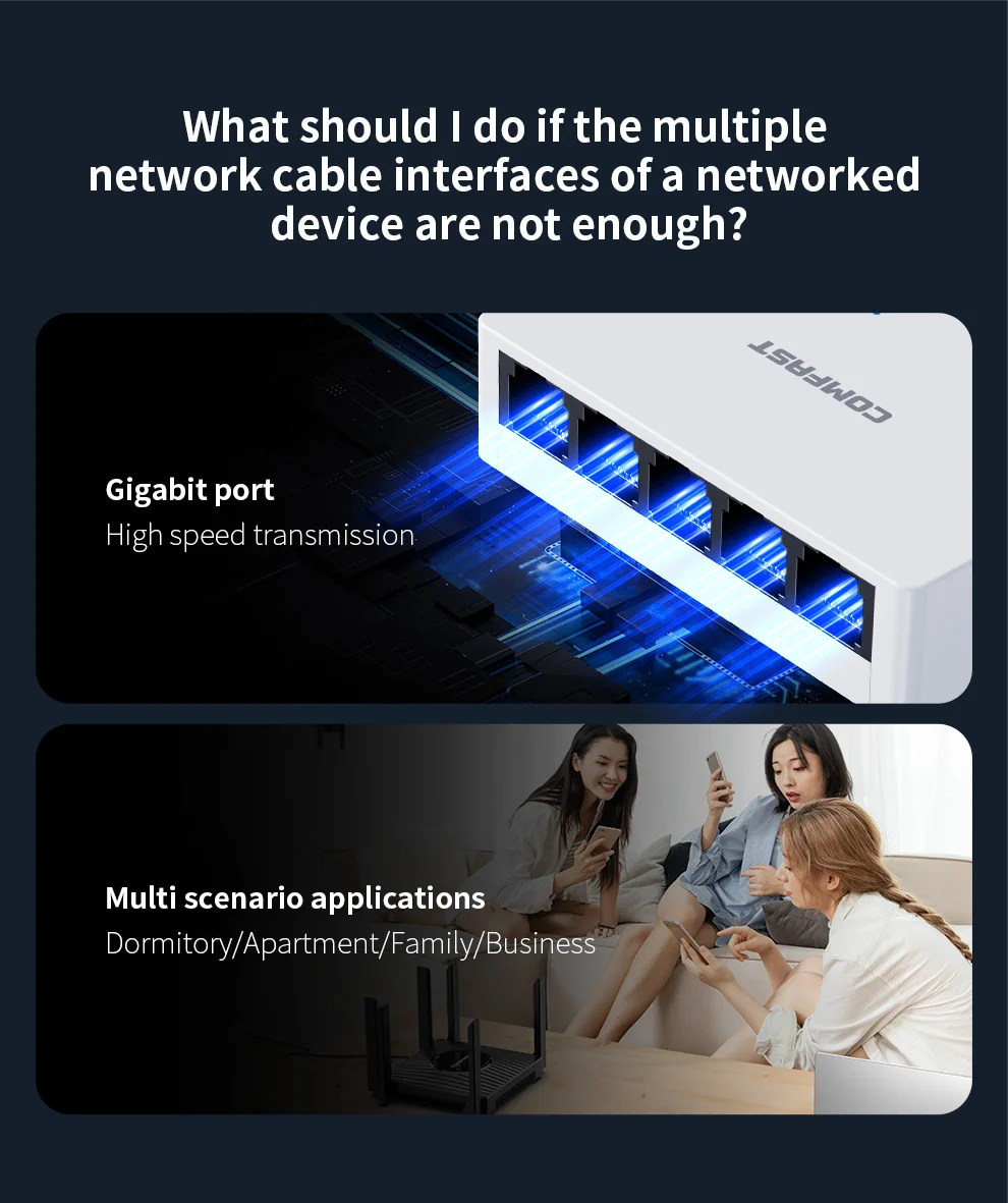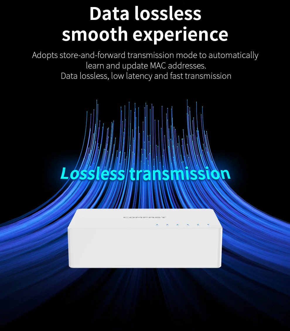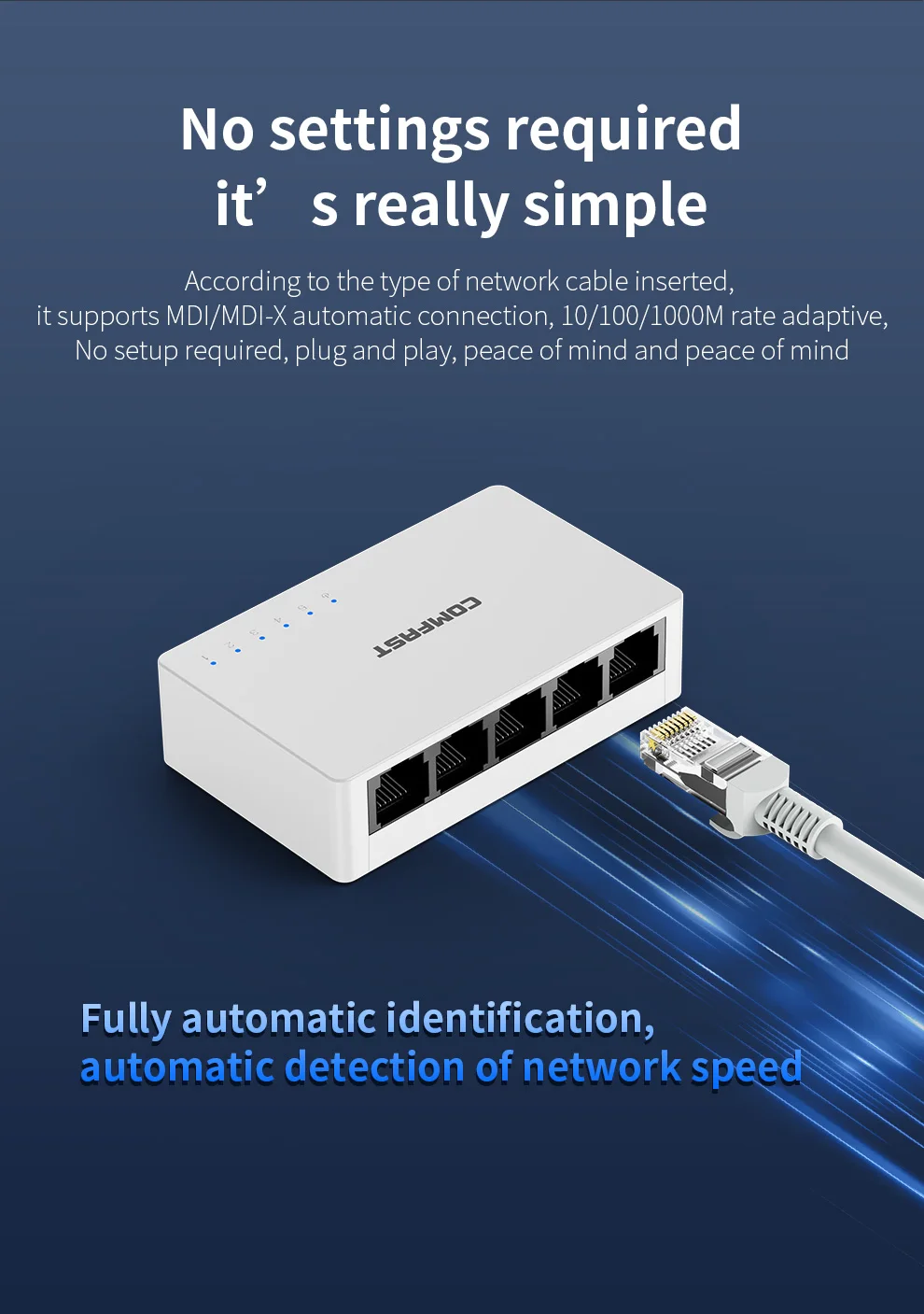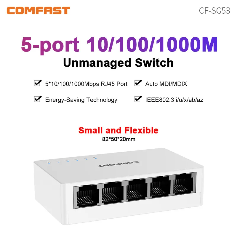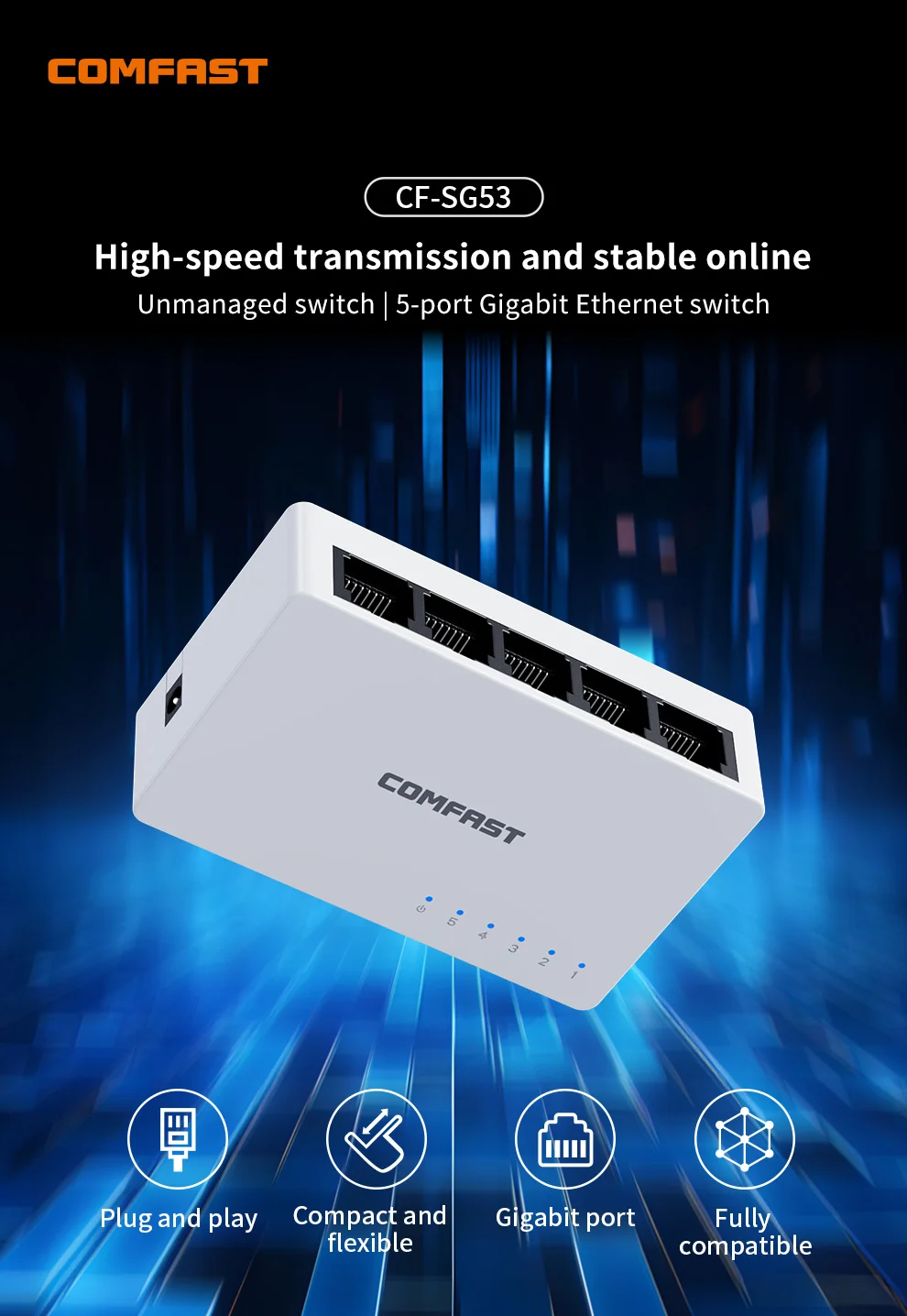 Comprar COMFAST-conmutador Gigabit Ethernet 2K, dispositivo automático MDI/MDIX, transmisión de alta velocidad de 1000Mbps, IEEE 802.3x, portátil, Plug & Play, 5 puertos
