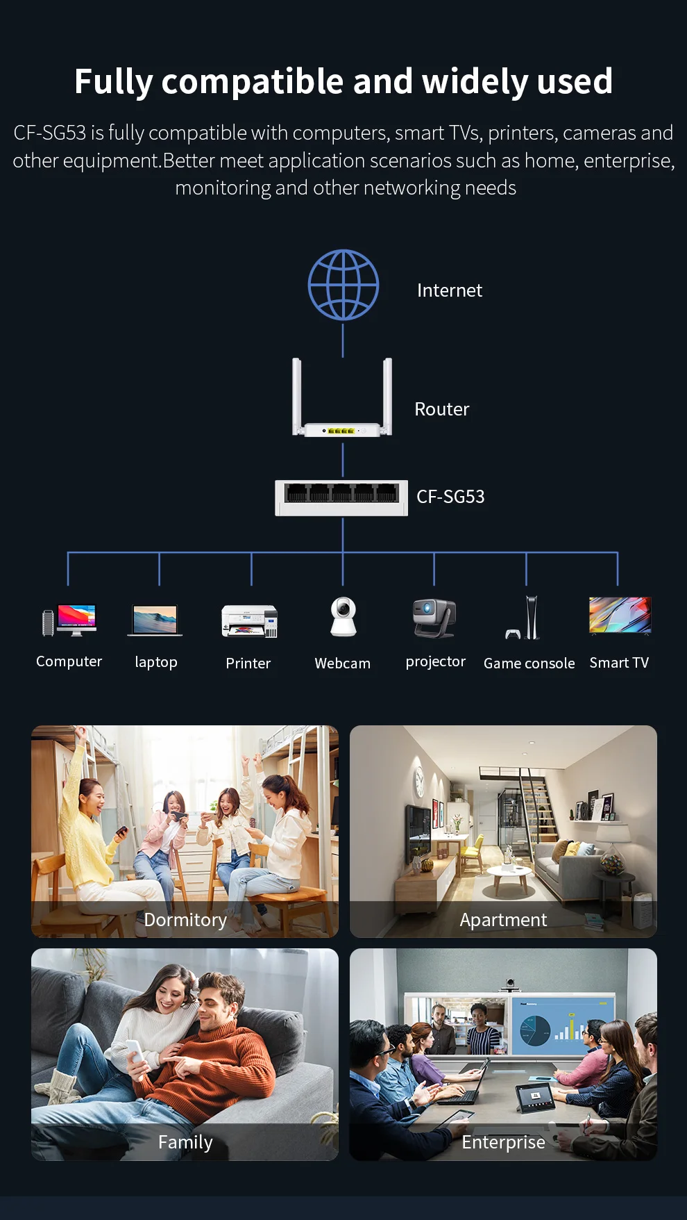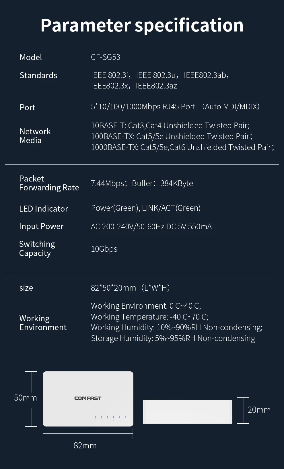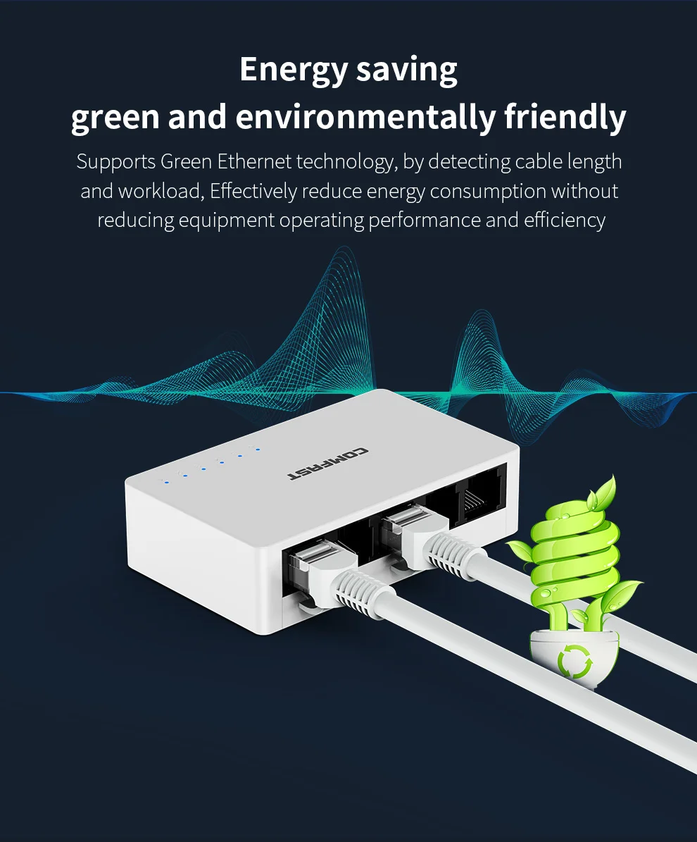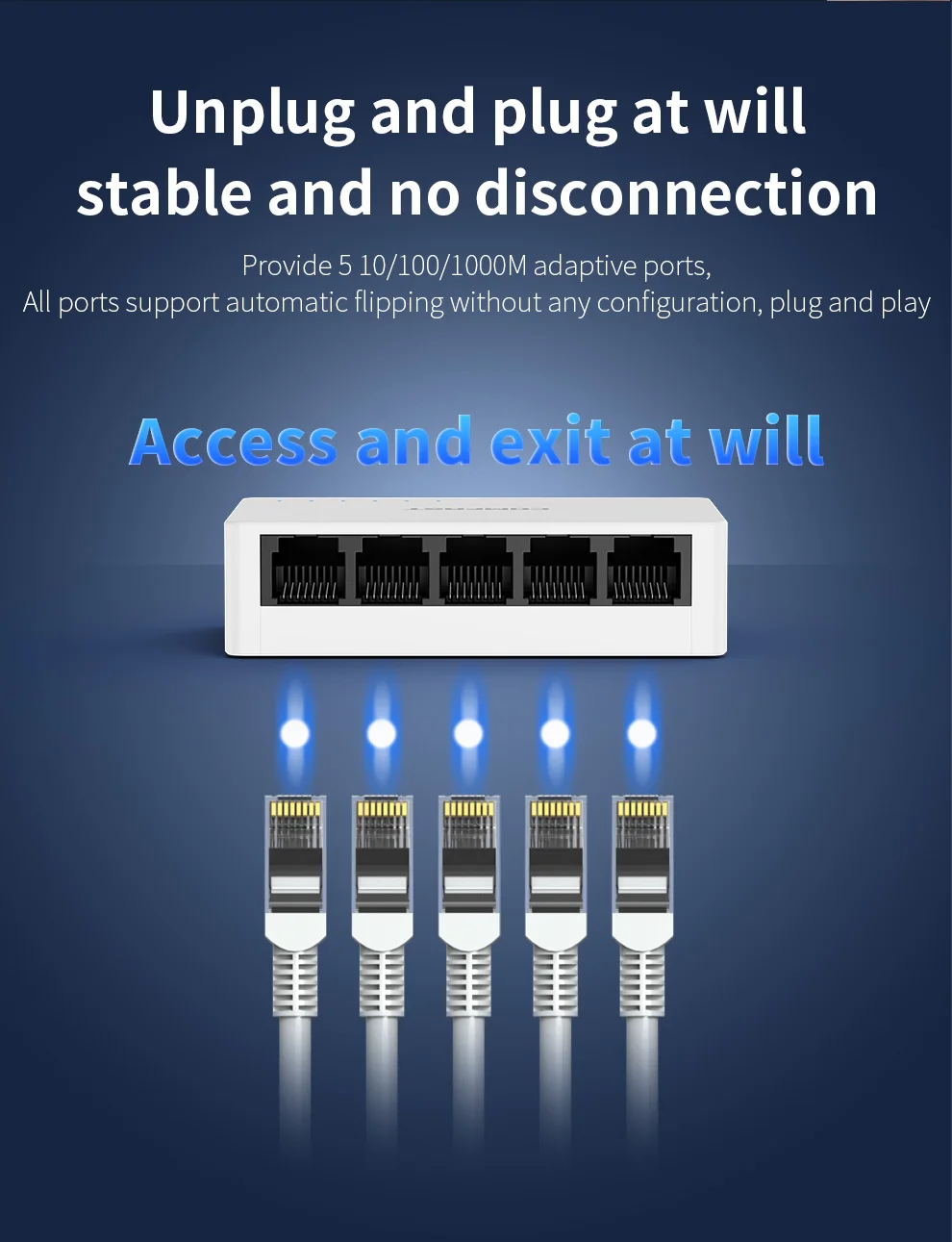 Comprar COMFAST-conmutador Gigabit Ethernet 2K, dispositivo automático MDI/MDIX, transmisión de alta velocidad de 1000Mbps, IEEE 802.3x, portátil, Plug & Play, 5 puertos