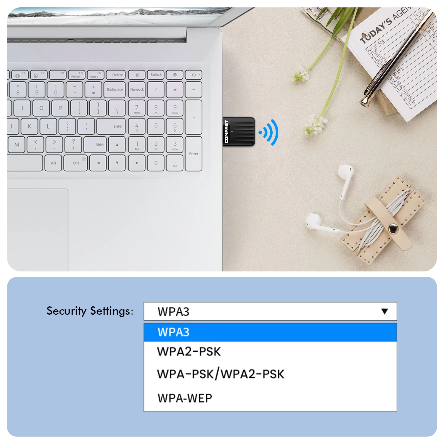 ComFAST Mini tarjeta de red inalámbrica de unidad libre de 650Mbps 2,4G y 5G adaptador WiFi de doble banda WPA3 receptor WiFi punto en caliente para PC/portátil