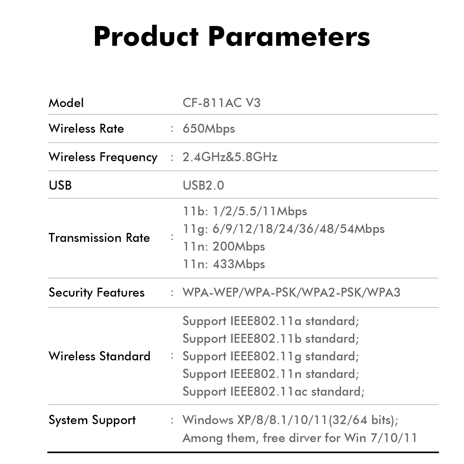 ComFAST Mini tarjeta de red inalámbrica de unidad libre de 650Mbps 2,4G y 5G adaptador WiFi de doble banda WPA3 receptor WiFi punto en caliente para PC/portátil