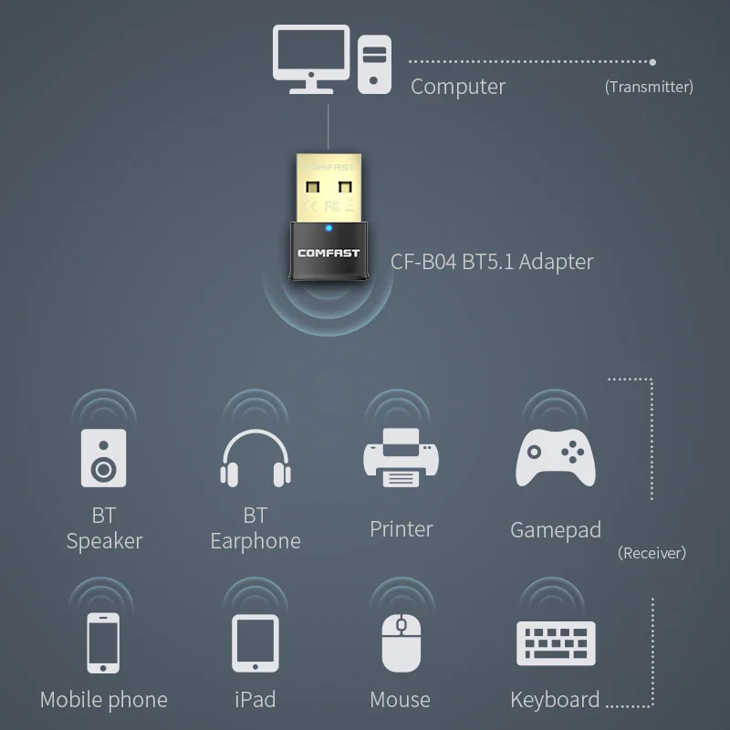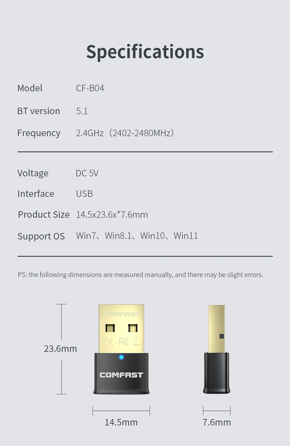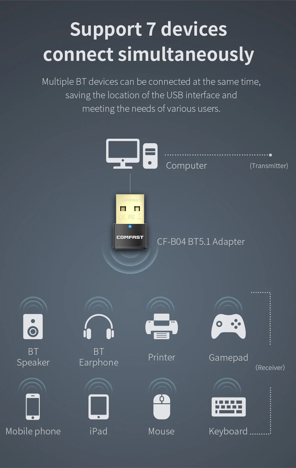 Comprar Comfast Mini USB inalámbrico Bluetooth Dongle BT5.1 adaptador música Audio receptor transmisor Plug and Play para Windows 7/8,1/10/11