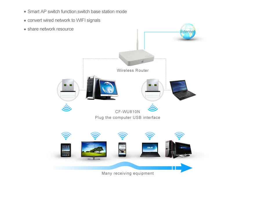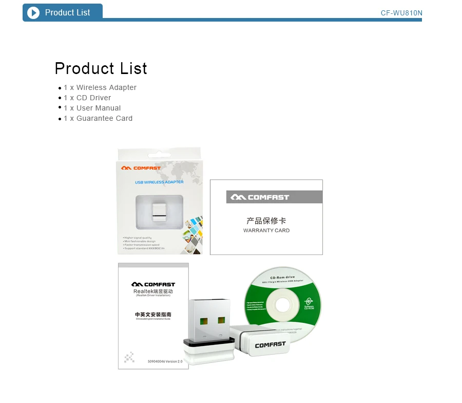 Comprar COMFAST-miniadaptador USB Wifi CF-WU810N RTL8188EUS, 2,4G, 150Mbps, emisor 11b/g/n, receptor, antena de tarjeta de red