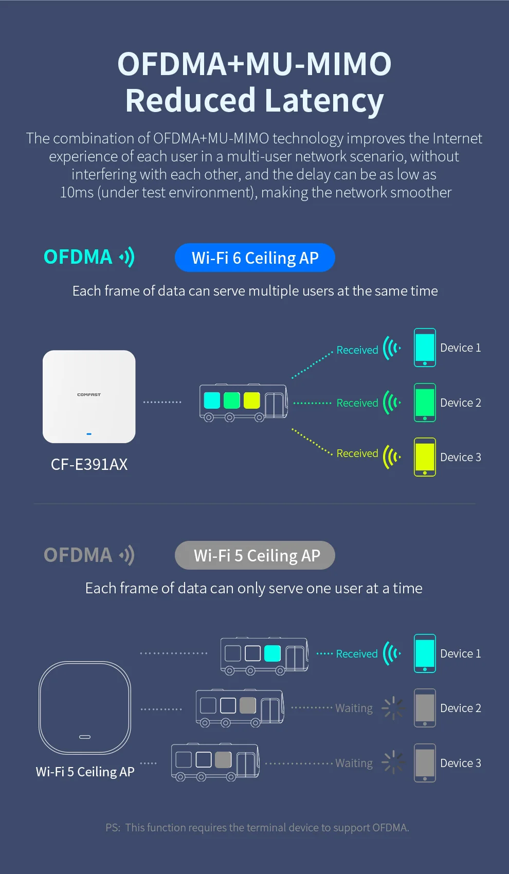 • Menor latencia, lo que permite que varios usuarios transmitan datos simultáneamente; Fuerte capacidad antiinterferencias, aliviando los problemas de interferencia en el mismo canal;