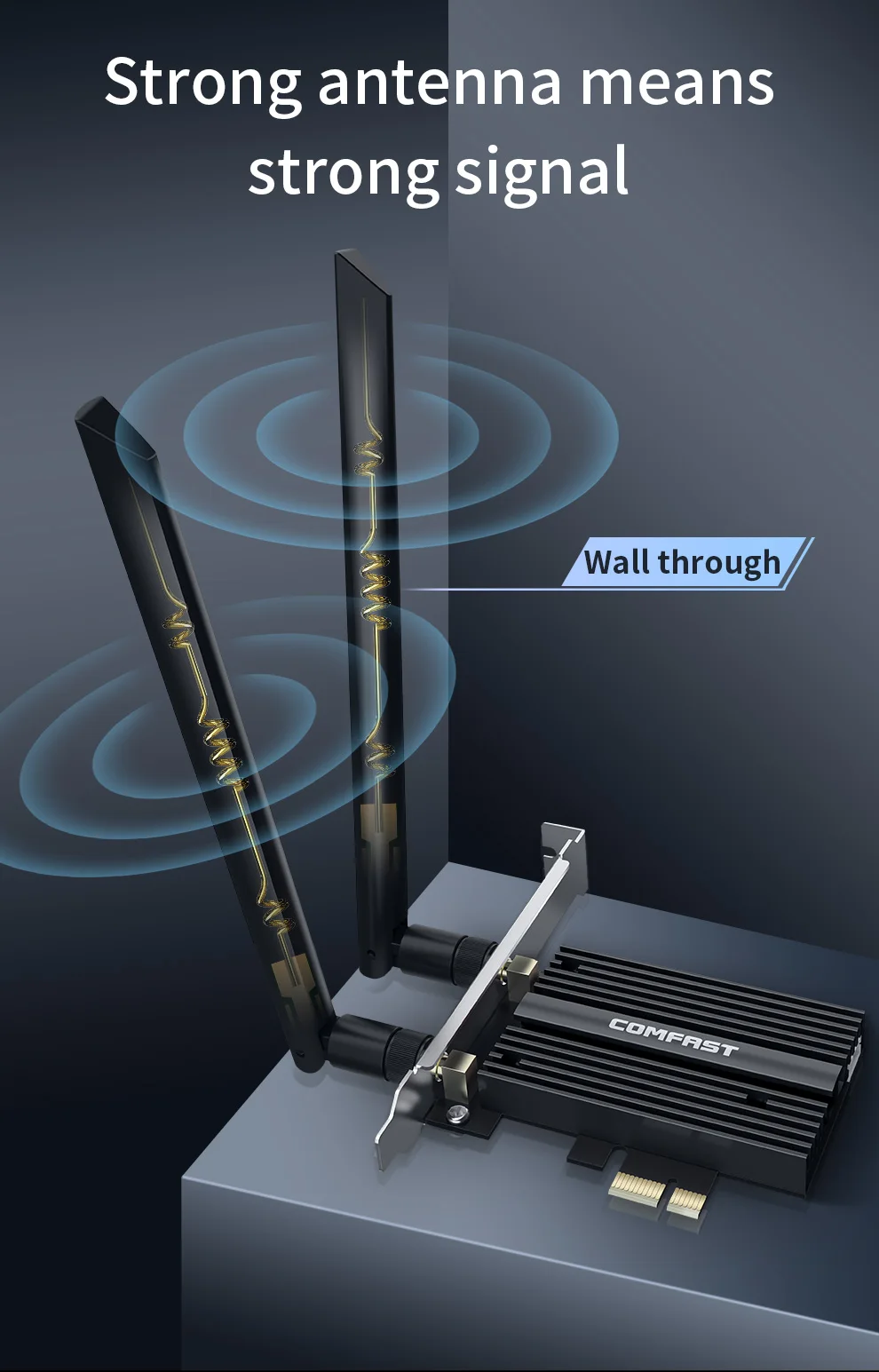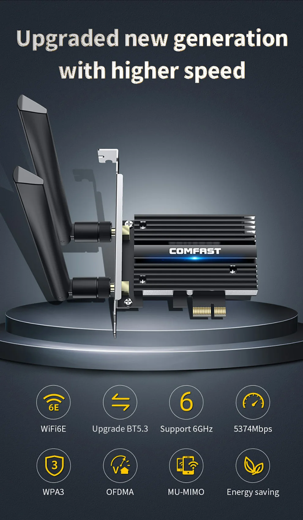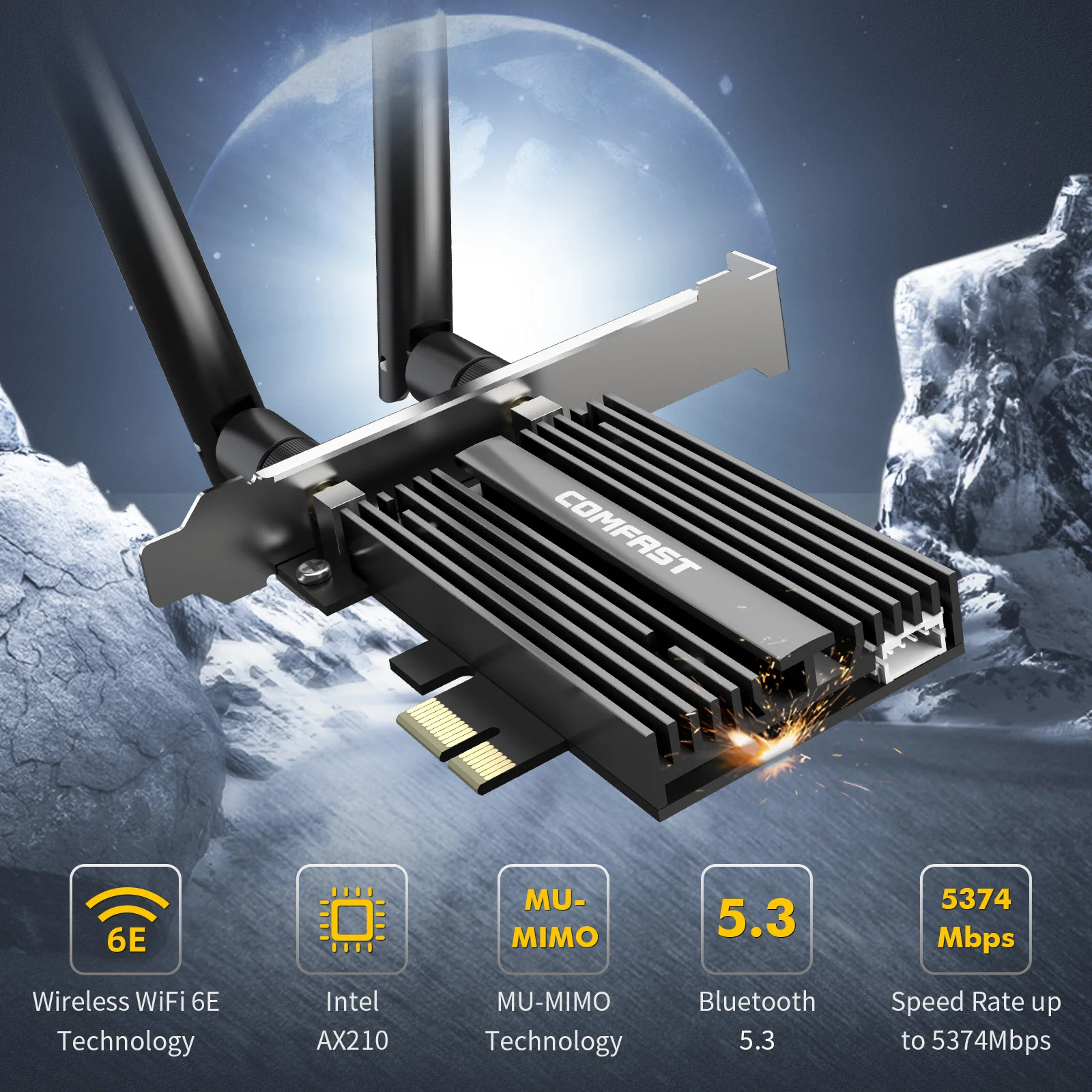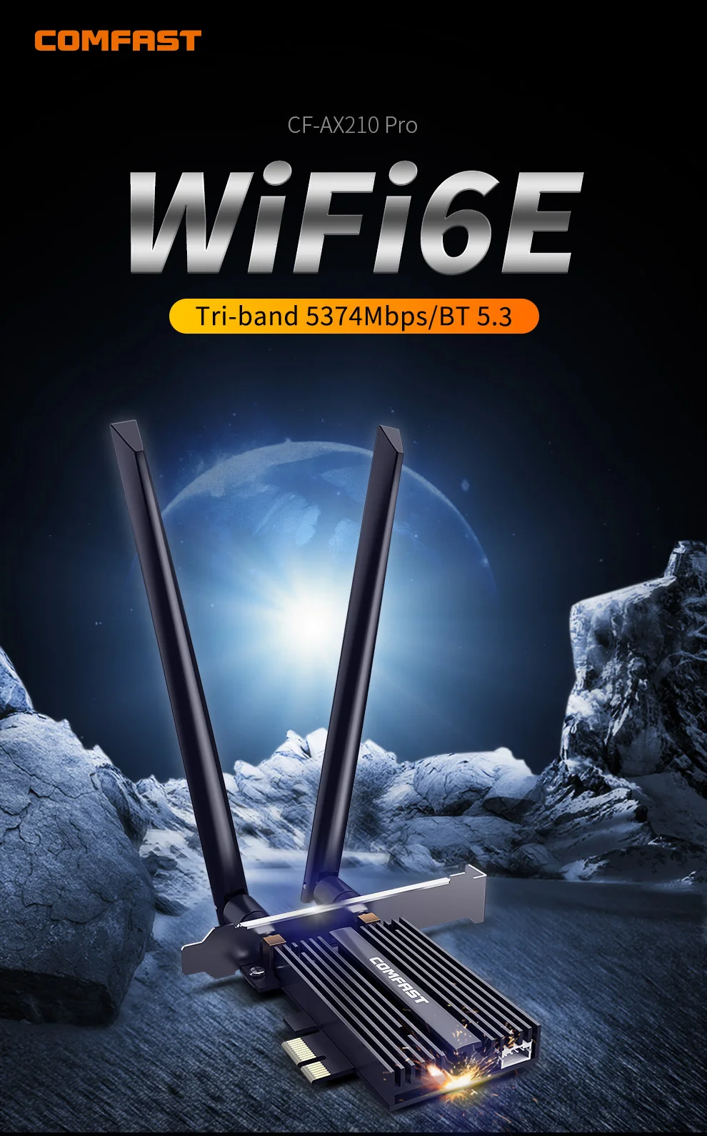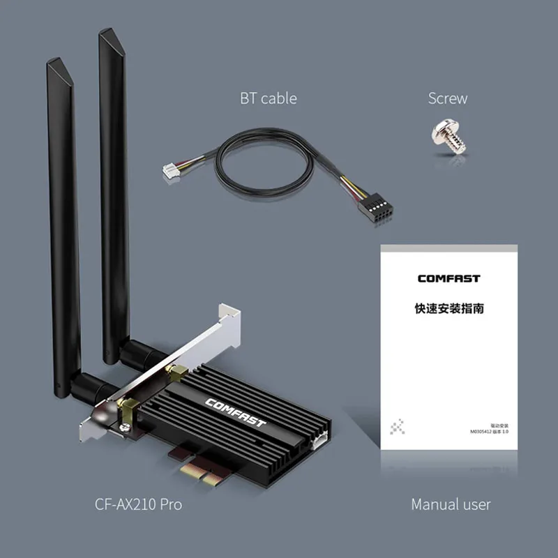 COMFAST 5374Mbps WiFi6E Intel AX210 PCIe tarjeta de red inalámbrica 2,4G/5G/6GHz WiFi 6e adaptador 802.11ax/AC Bluetooth 5,3 para PC Win11/10
