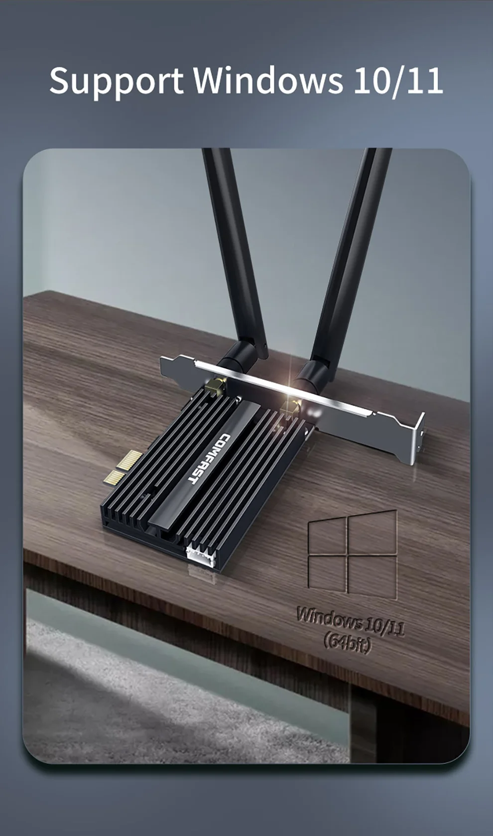 * Tenga en cuenta que el Wi-Fi de 6GHz solo está disponible para Win 11 o la actualización a la versión Win 10 Dev; Velocidad de hasta 5GHz/6GHz-2400Mbps; (El enrutador debe admitir 802.11ax,160MHz)