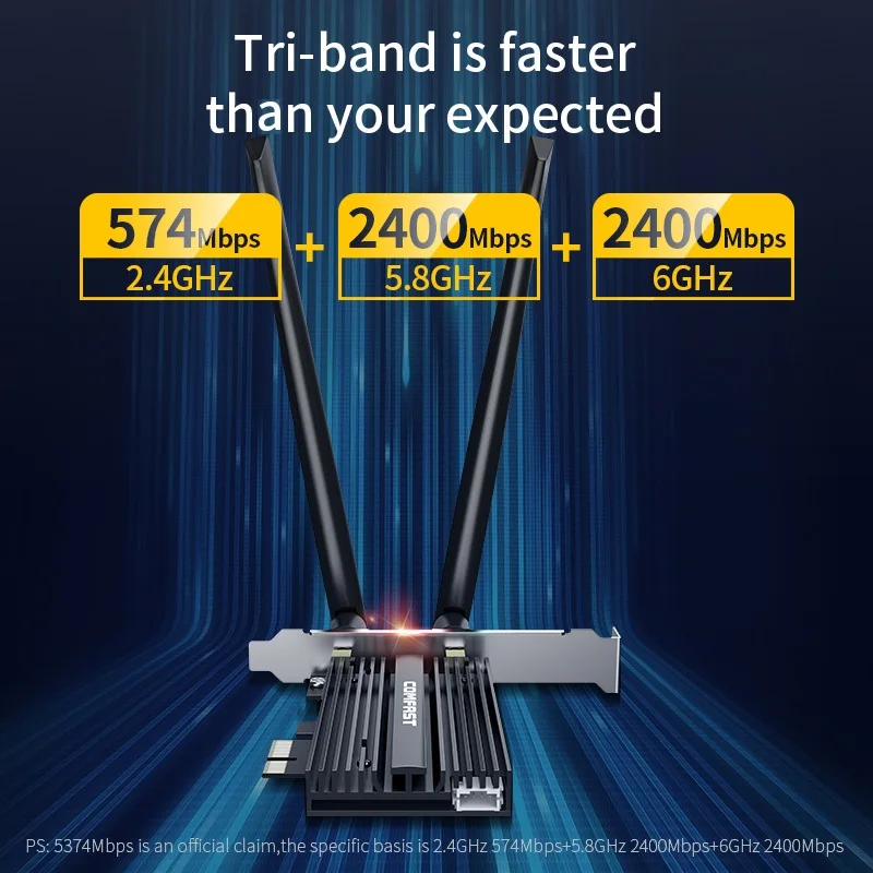 PD: 5374Mbps es un reclamo oficial, la base específica es 2,4 GHz 574Mbps + 5,8 GHz 2400Mbps + 6GH.2400Mbps